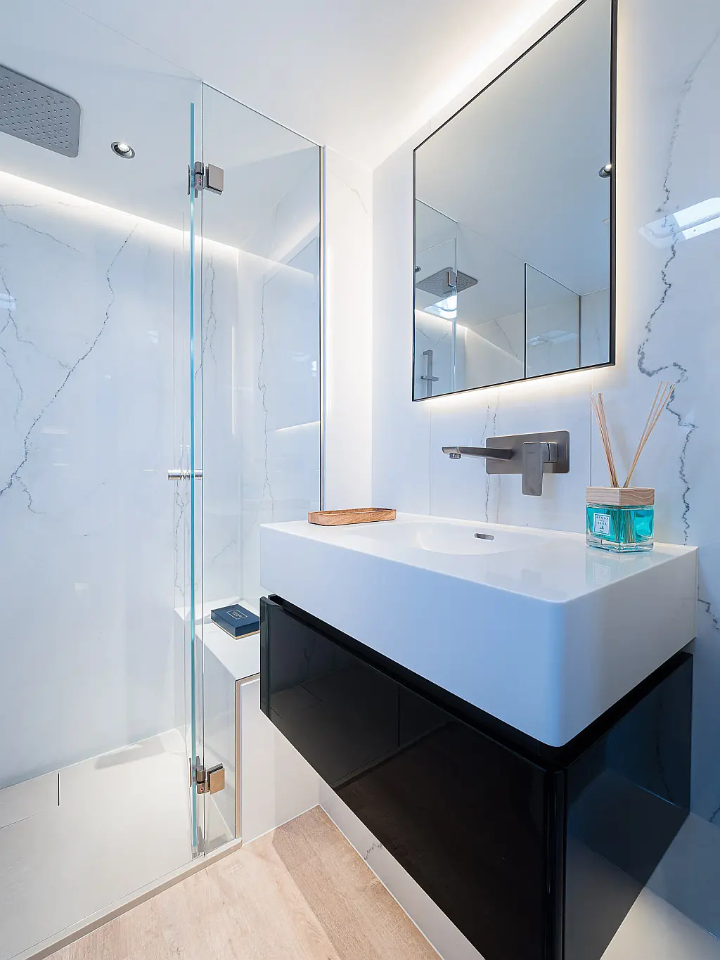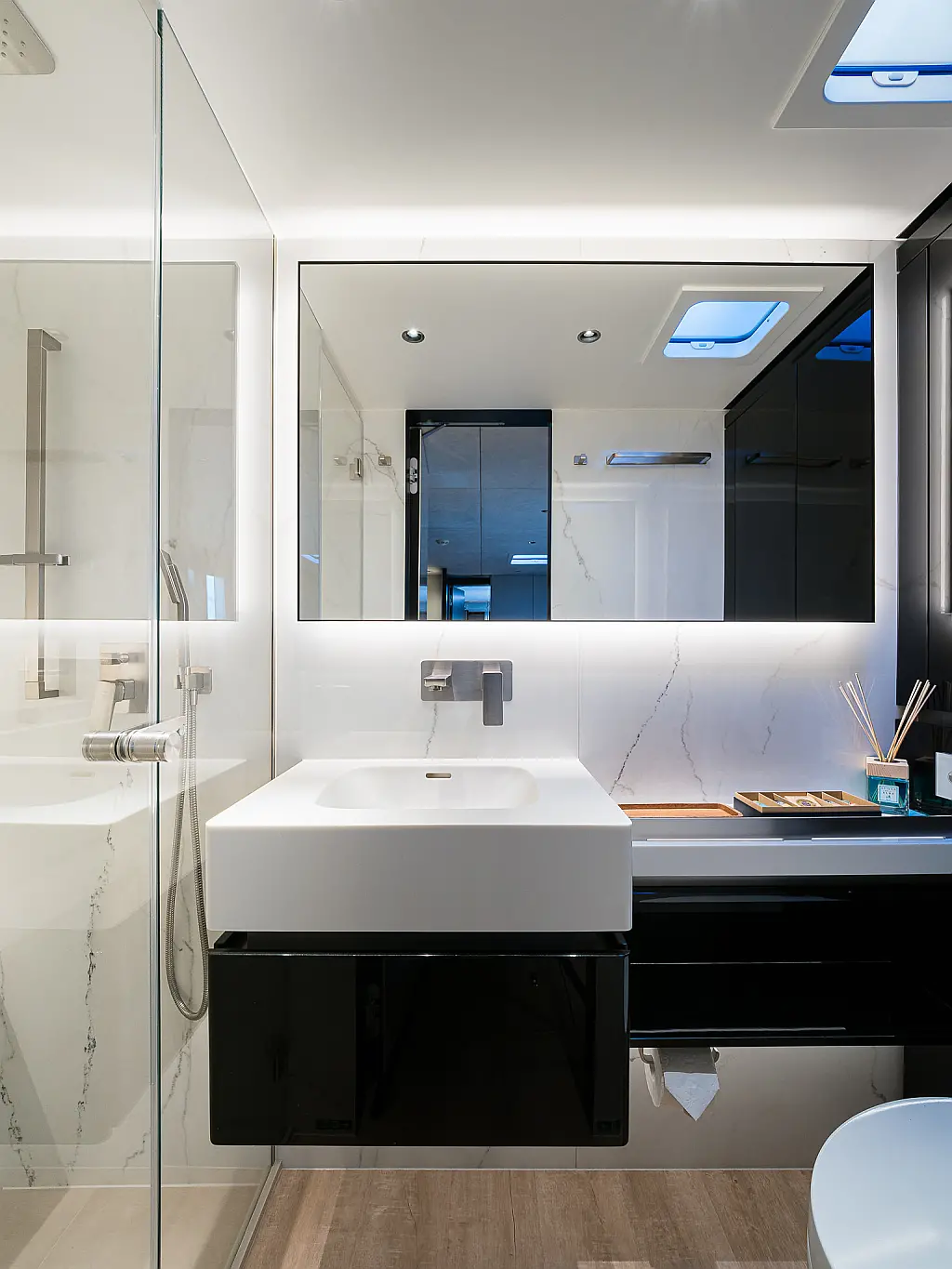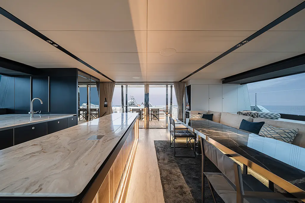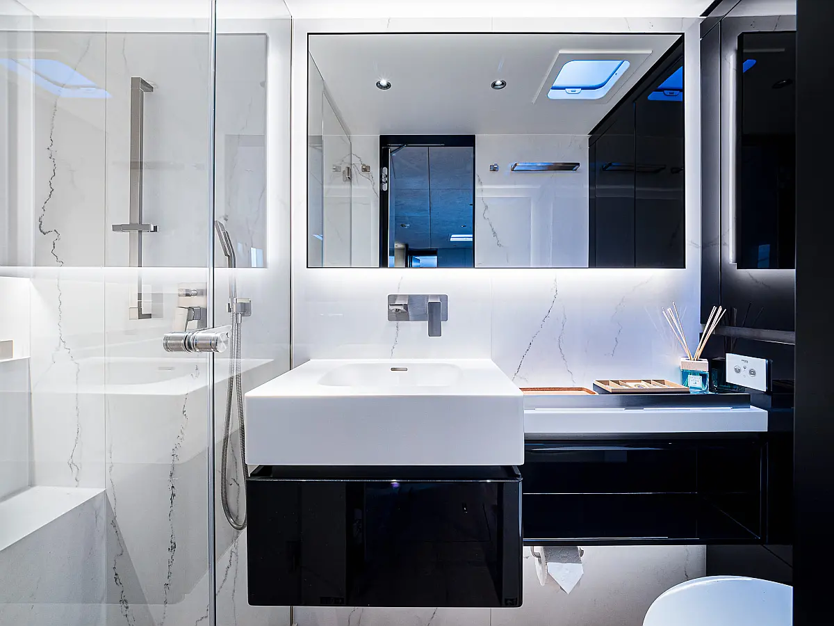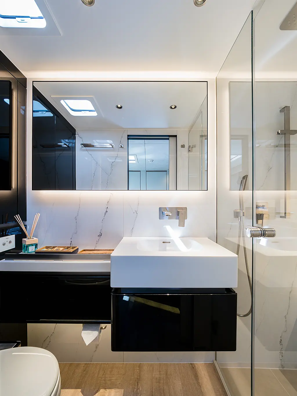 Cockpit speakers, Barbecue grill in cockpit, Air condition, Heating, Swimming platform, Bimini, Teak deck, Refrigerator, Generator, Solar Panels, Dinghy, Sprayhood