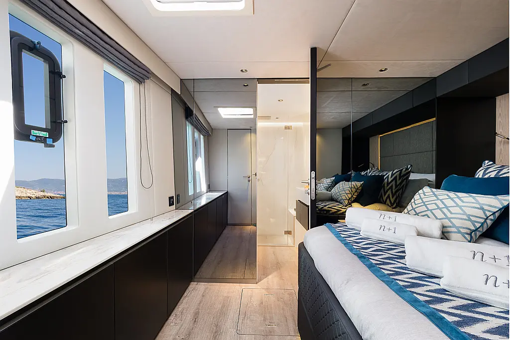 5 (1 master cabins +3 double guest + 1 bunkbed + crew)