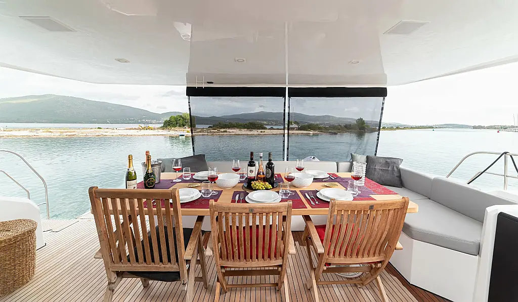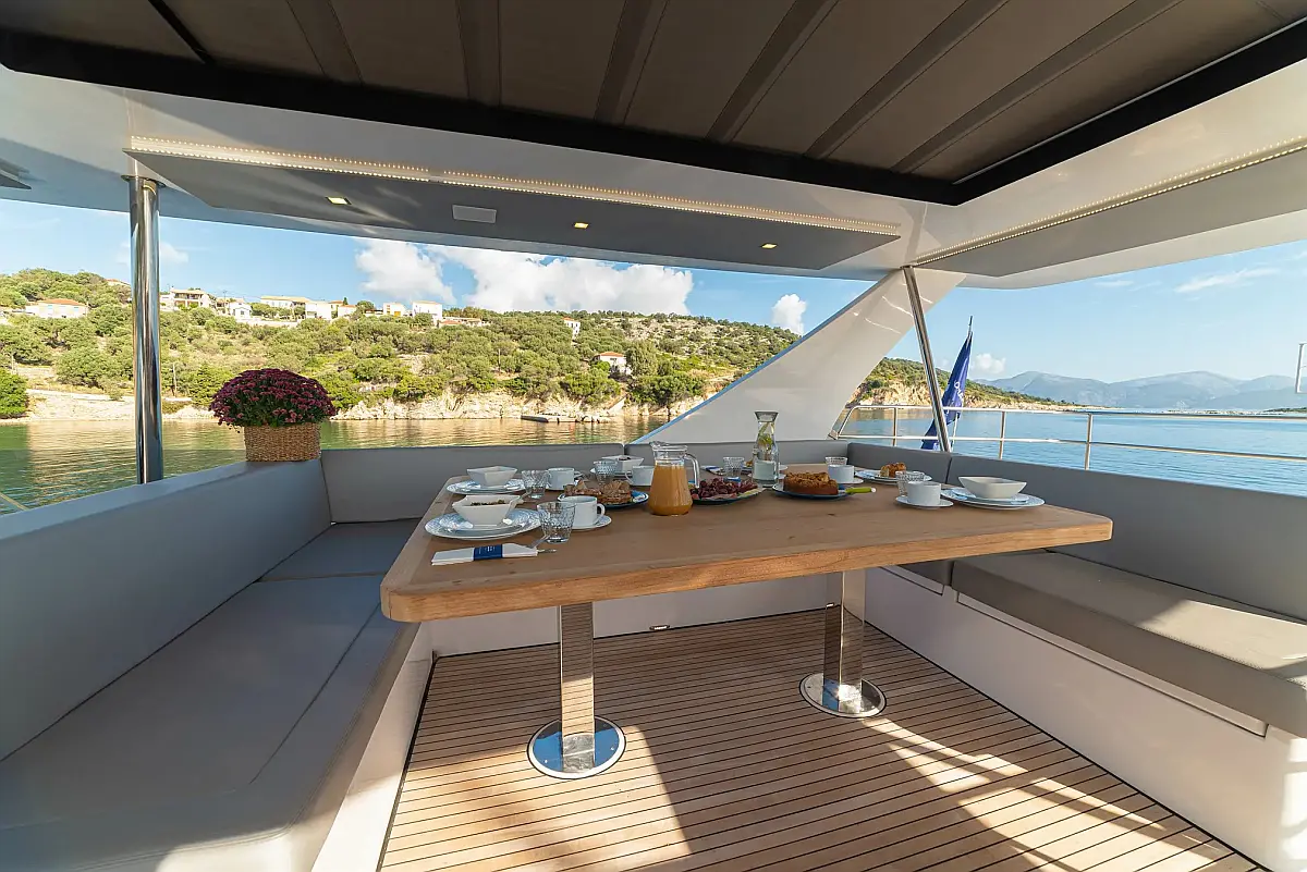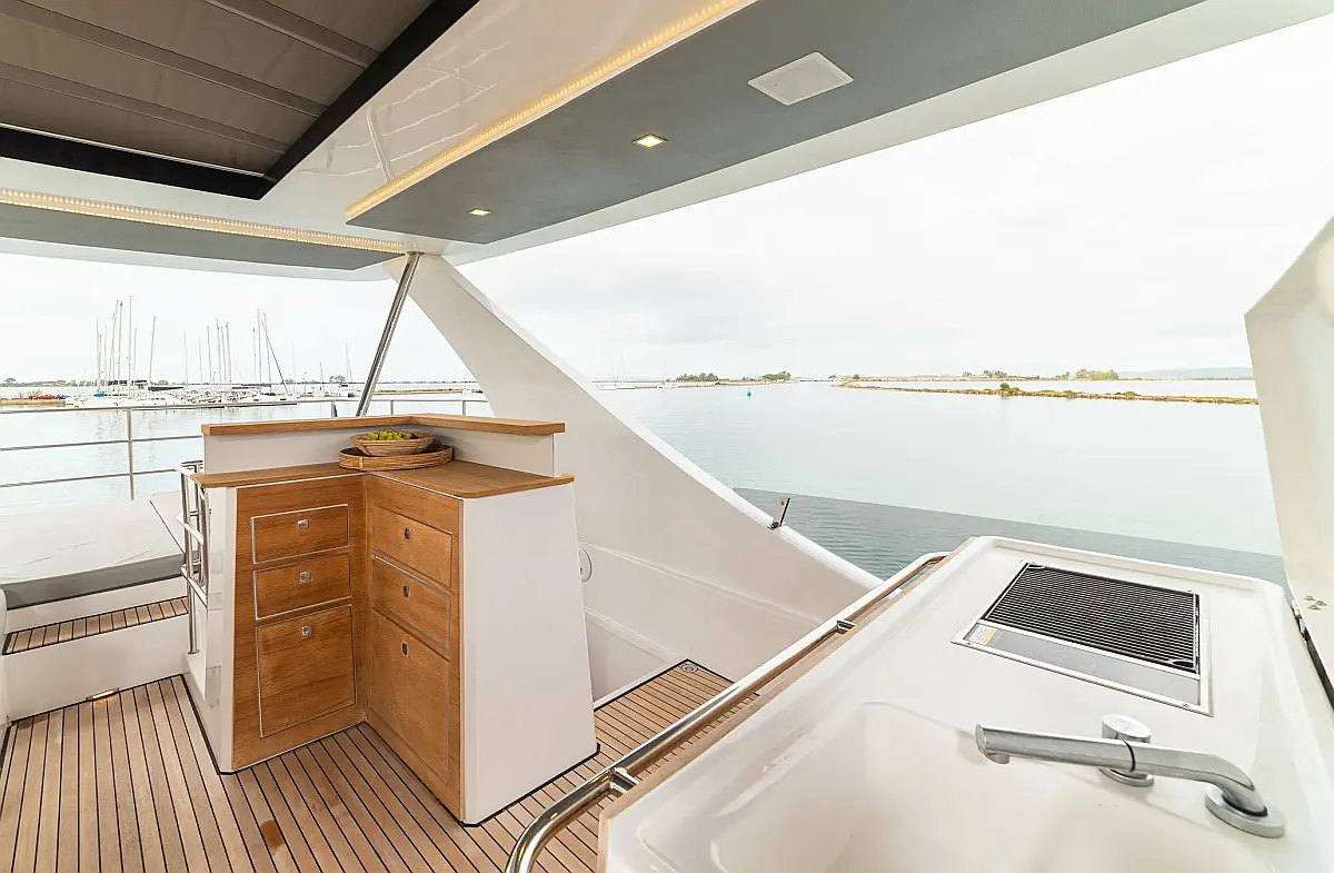 Generator, Water maker, Dinghy, Ice maker, Inverter, Outboard engine, Refrigerator, Coffee maker, Air condition, Barbecue grill in cockpit, Teak Cockpit, Teak deck