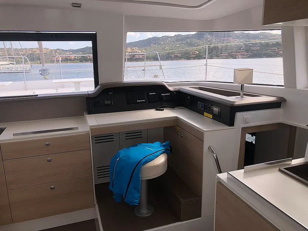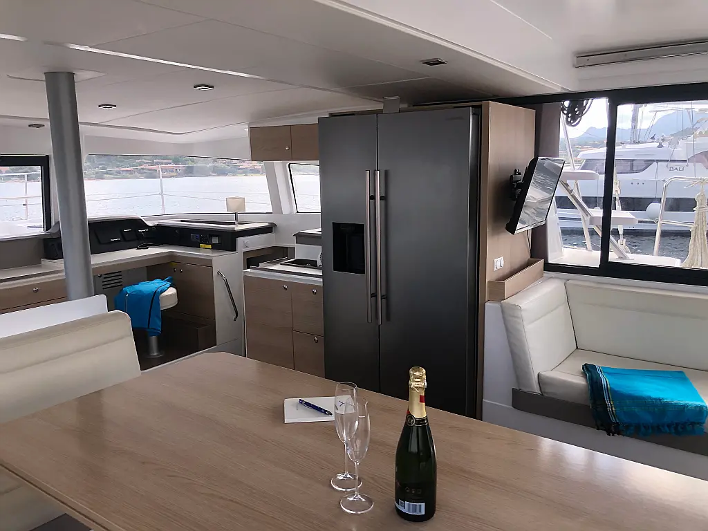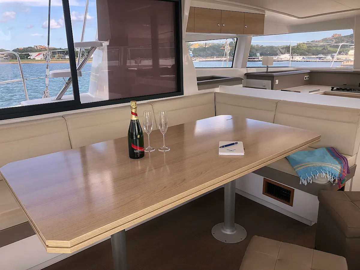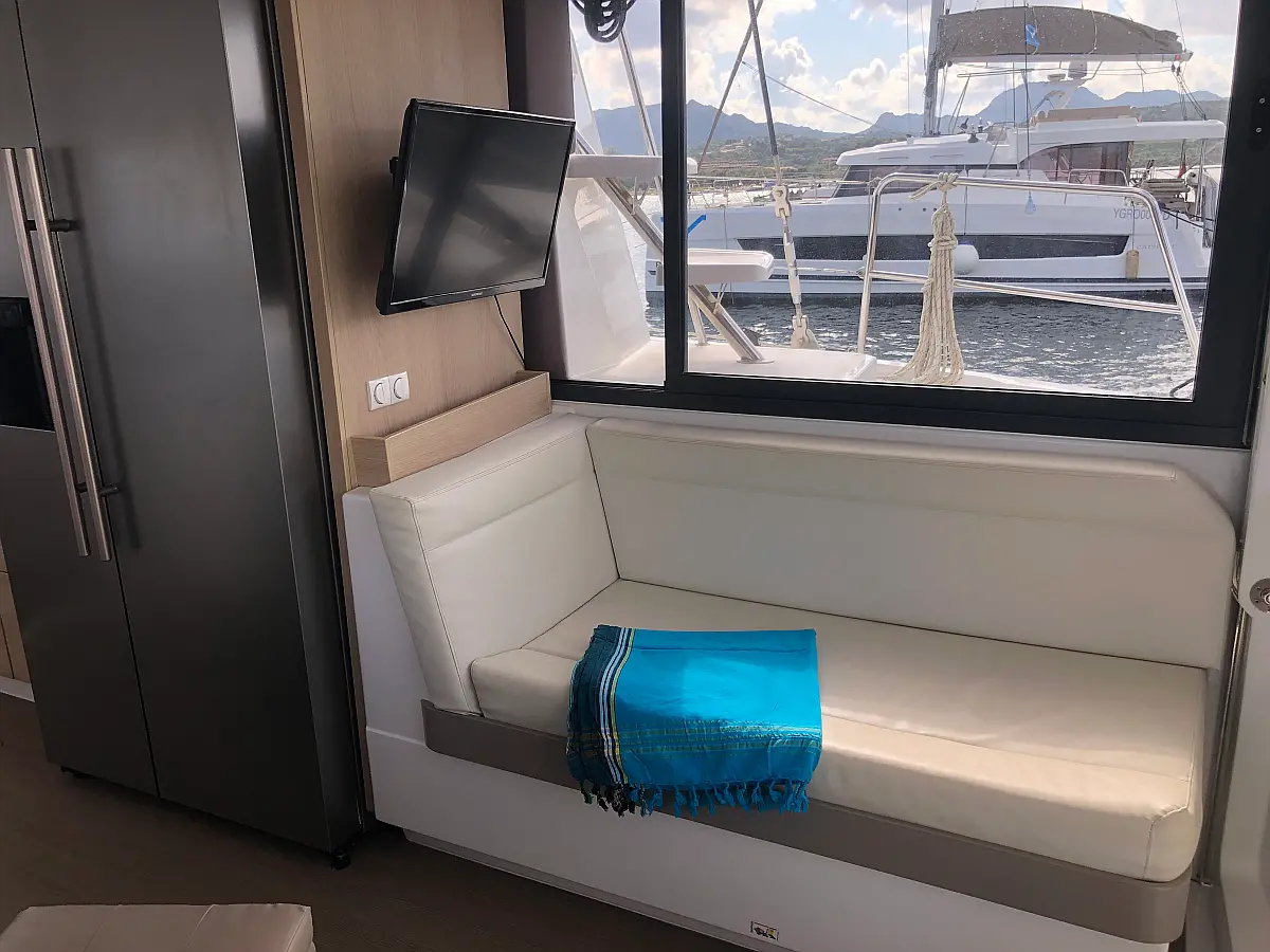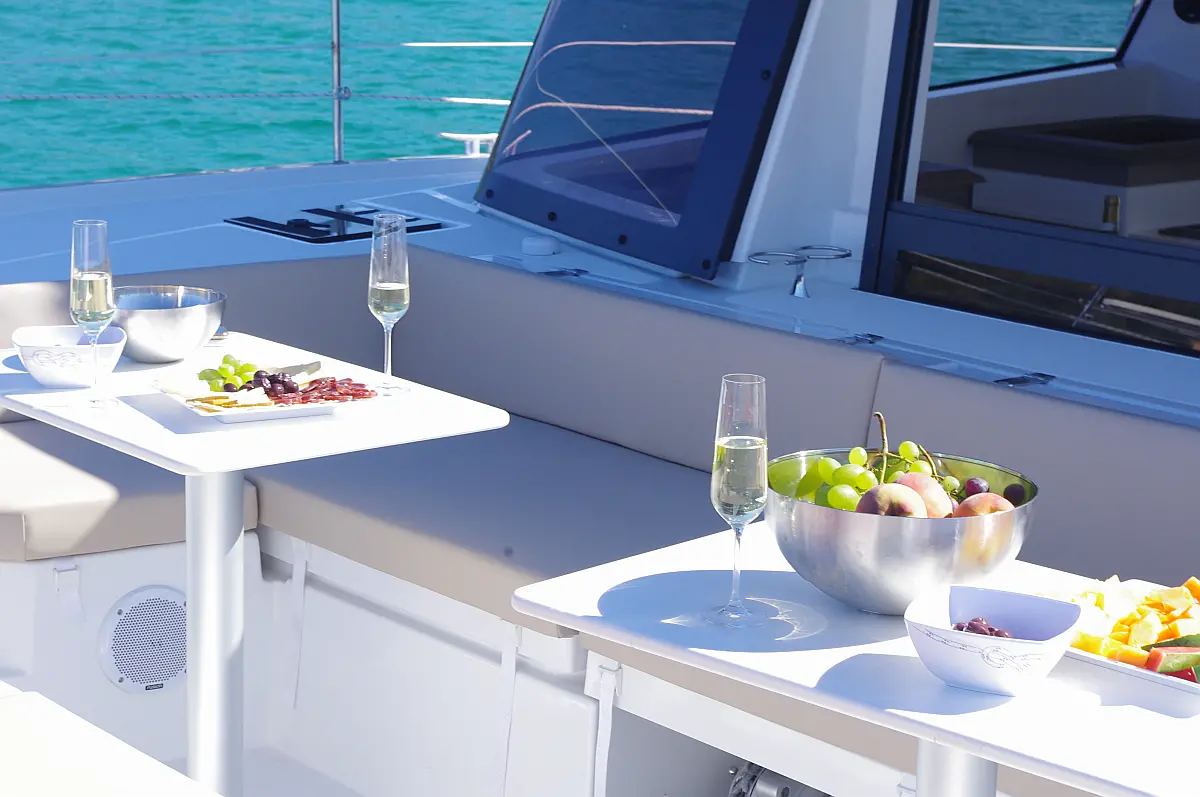 Cockpit cushions, Barbecue grill in cockpit, Electric toilet, Refrigerator, Electric winches, Hydraulic gangway, Inverter, Solar Panels