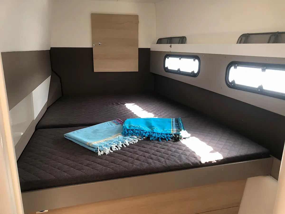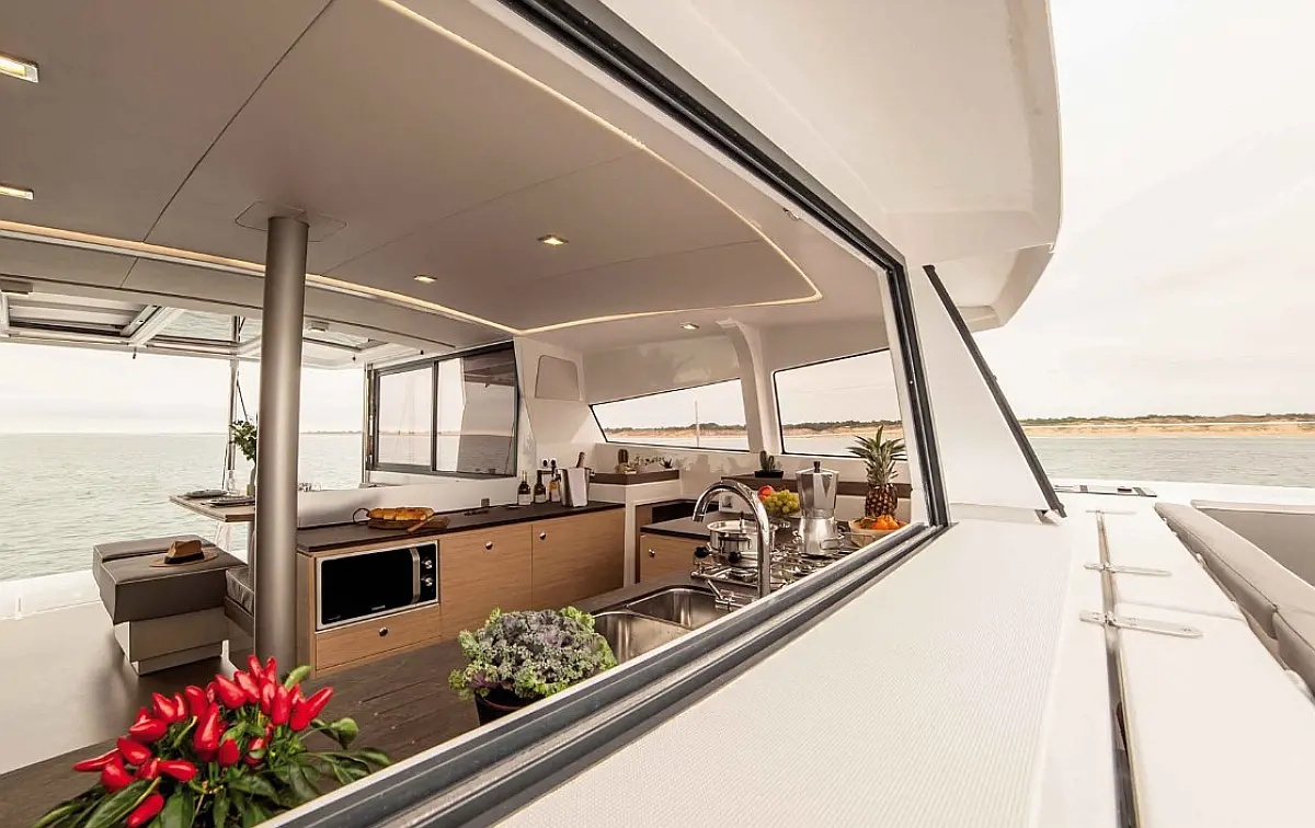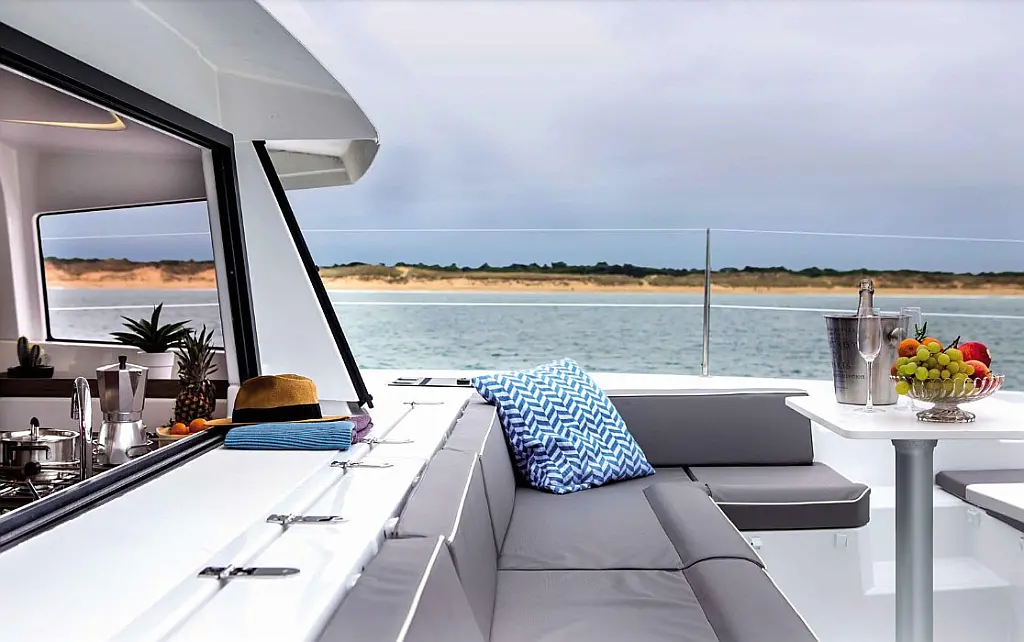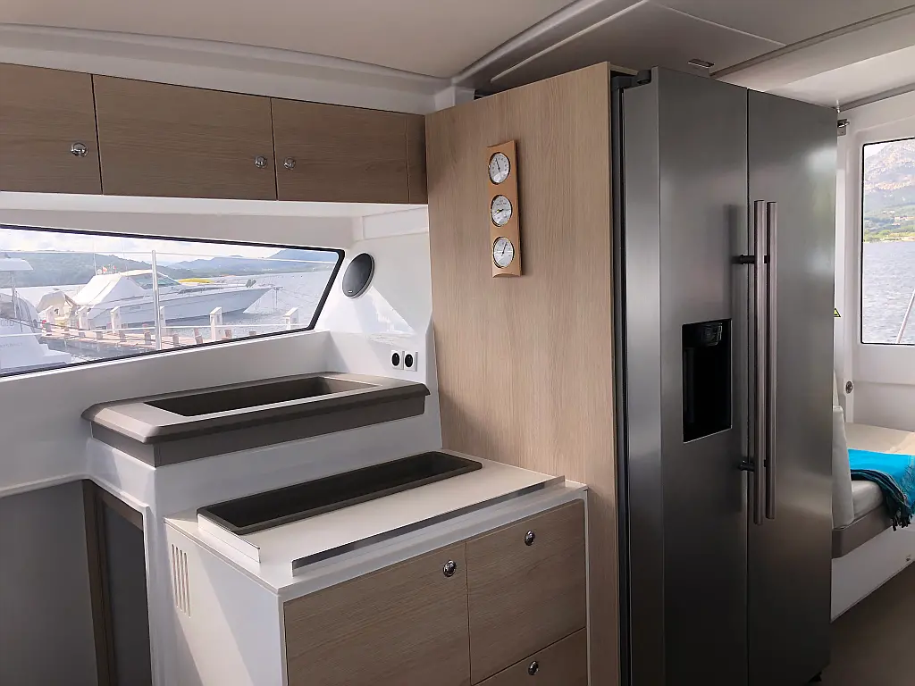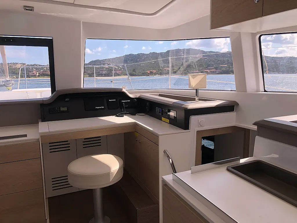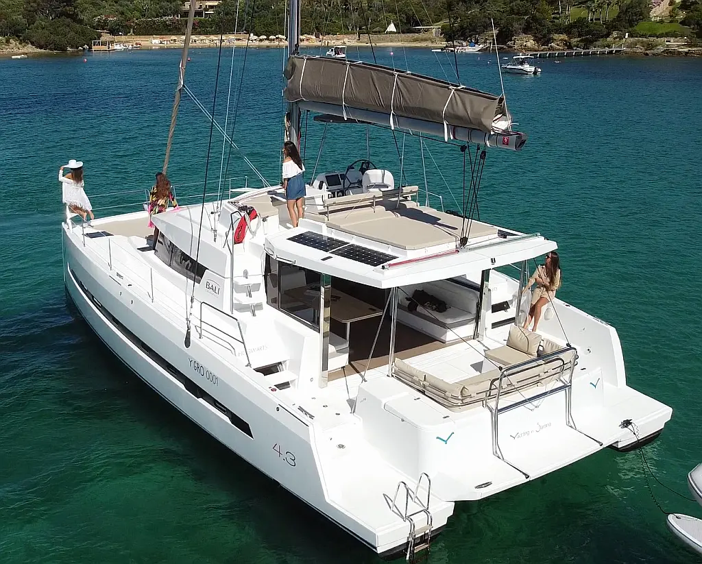 Cockpit cushions, Barbecue grill in cockpit, Electric toilet, Refrigerator, Electric winches, Hydraulic gangway, Inverter, Solar Panels