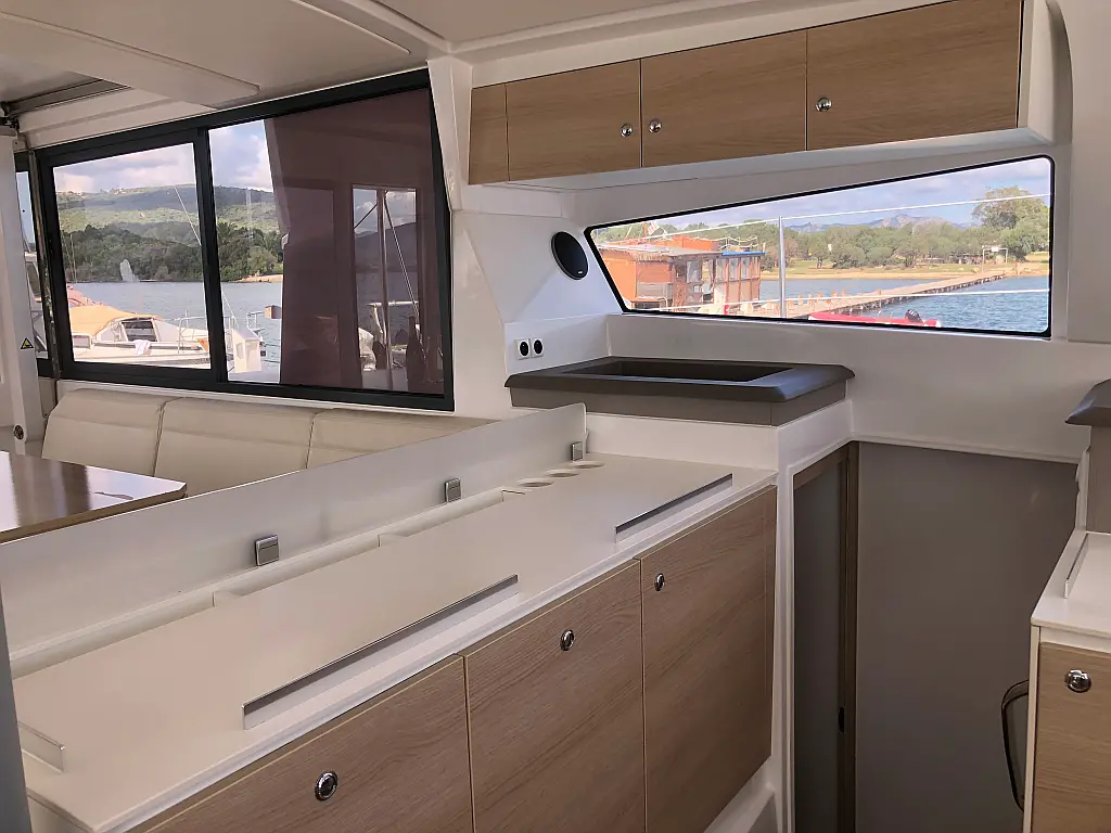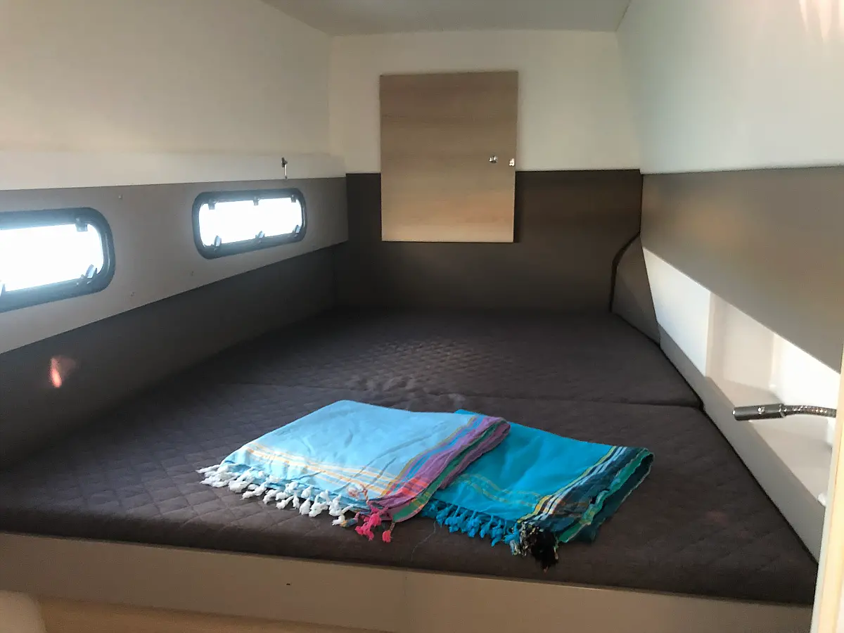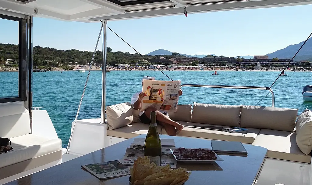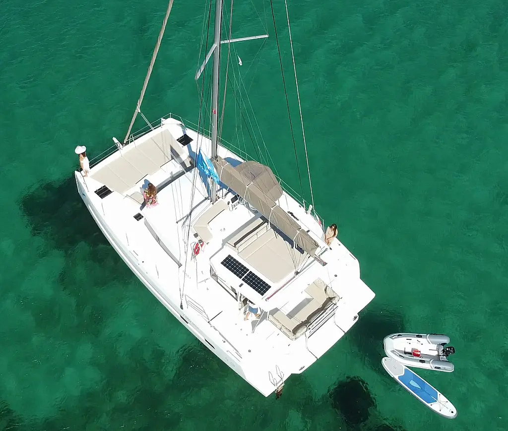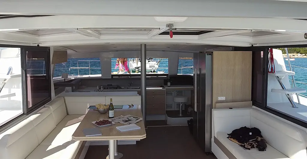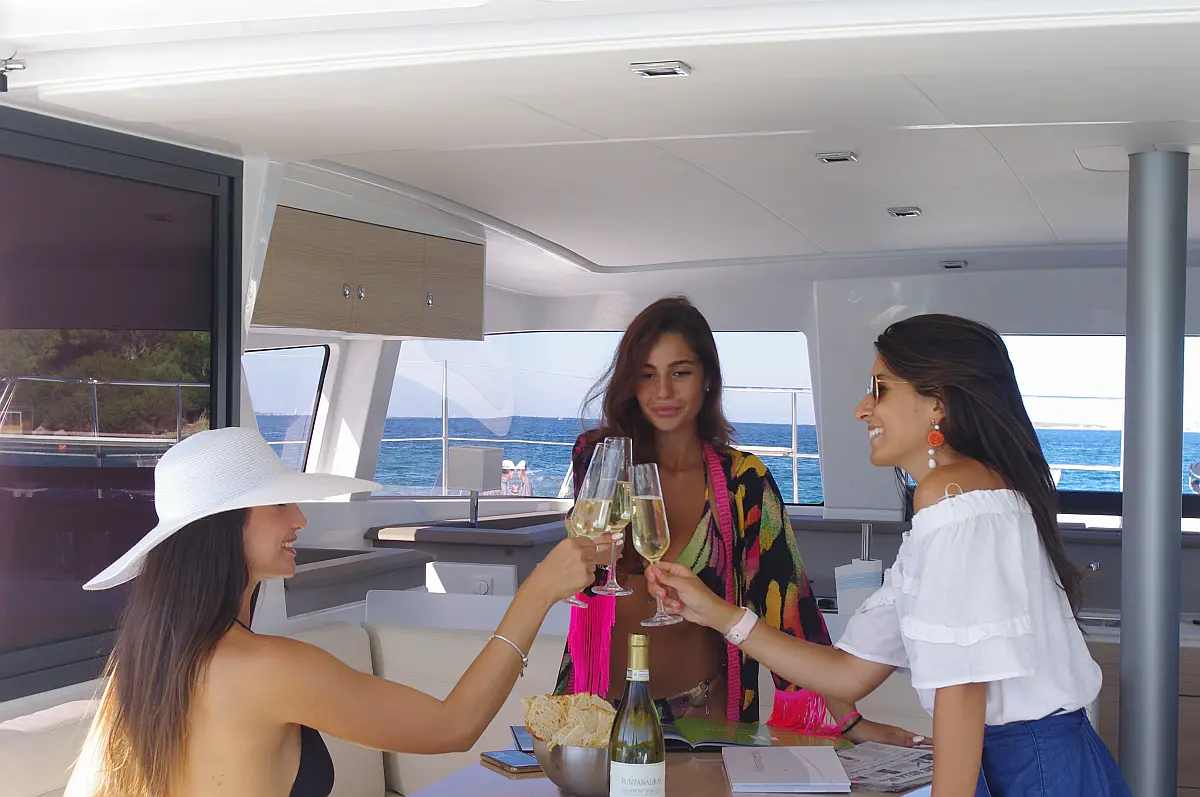 Cockpit cushions, Barbecue grill in cockpit, Electric toilet, Refrigerator, Electric winches, Hydraulic gangway, Inverter, Solar Panels