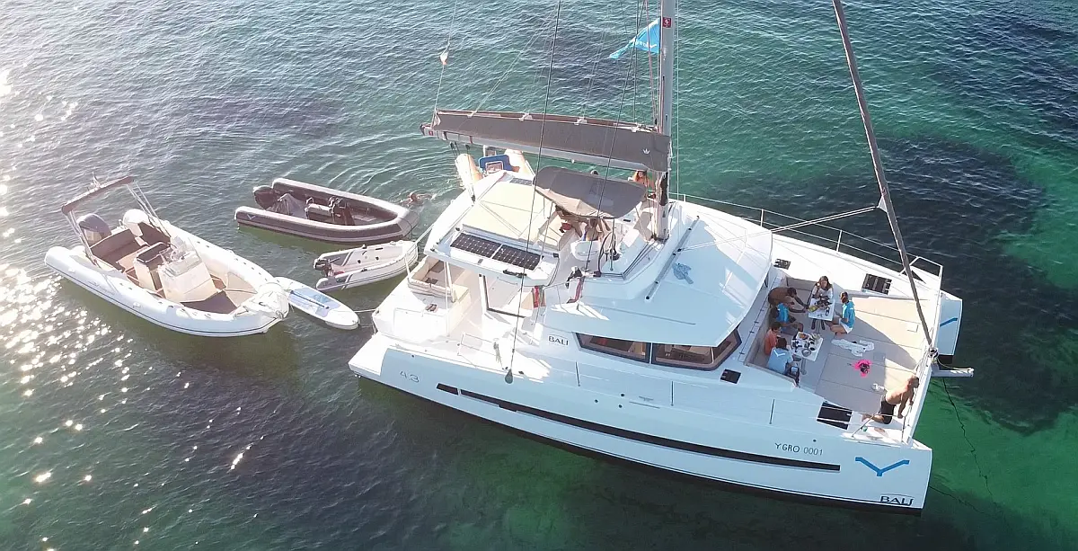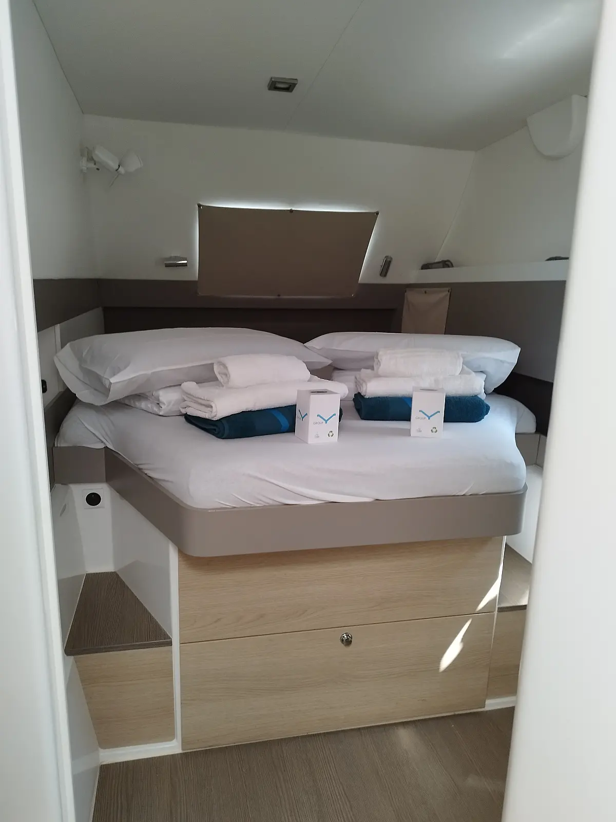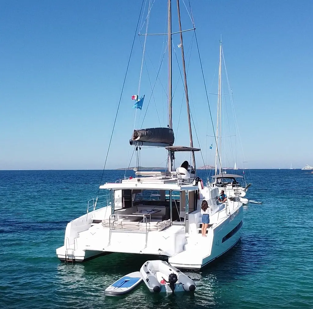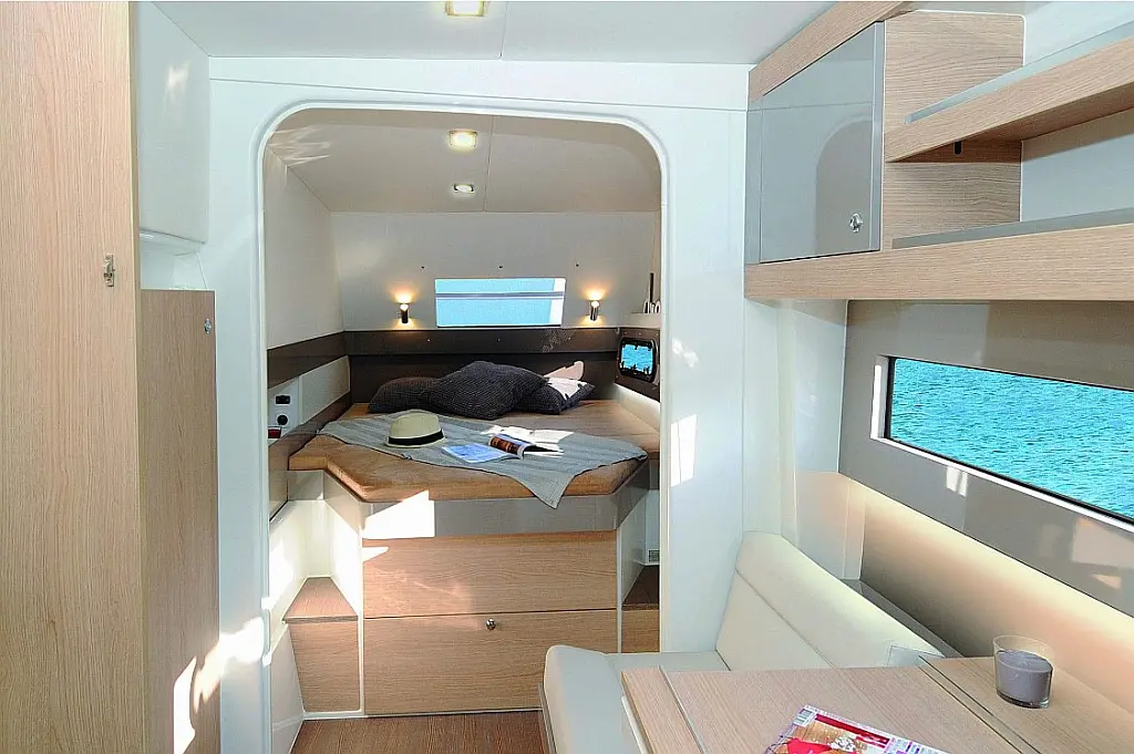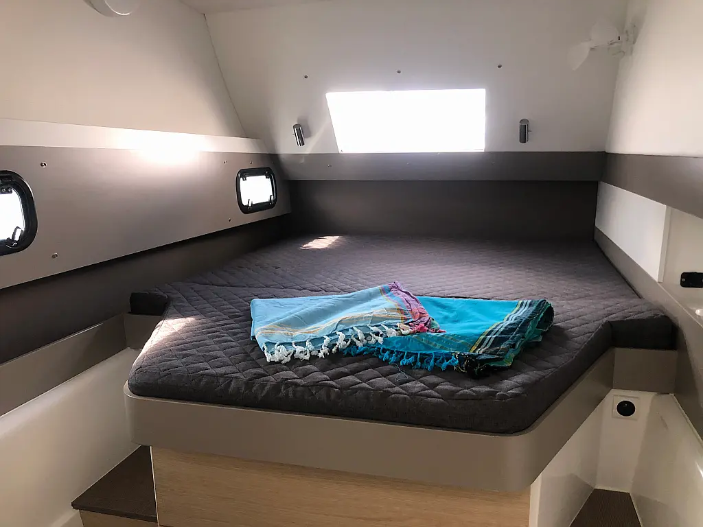 Cockpit cushions, Barbecue grill in cockpit, Electric toilet, Refrigerator, Electric winches, Hydraulic gangway, Inverter, Solar Panels