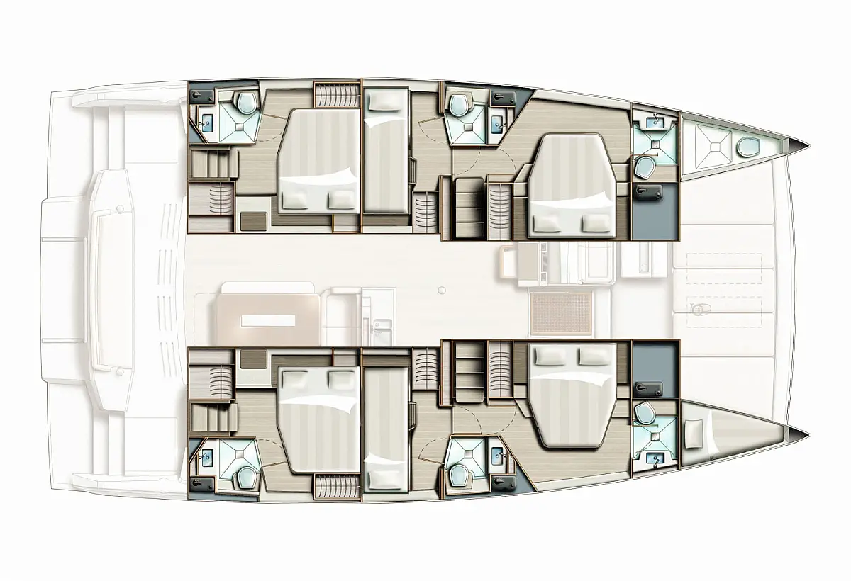 Generator, Dinghy, Outboard engine, Electric winches, Solar Panels, Inverter, Bimini, Cockpit cushions, Coffee maker, Air condition, Refrigerator, Barbecue grill in cockpit, Water maker, Heating, Ice maker, Electric toilet