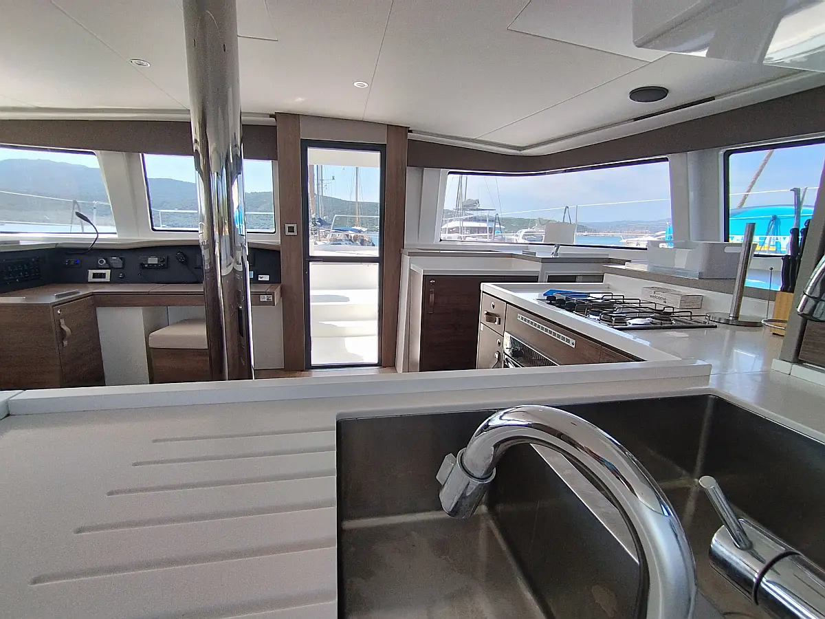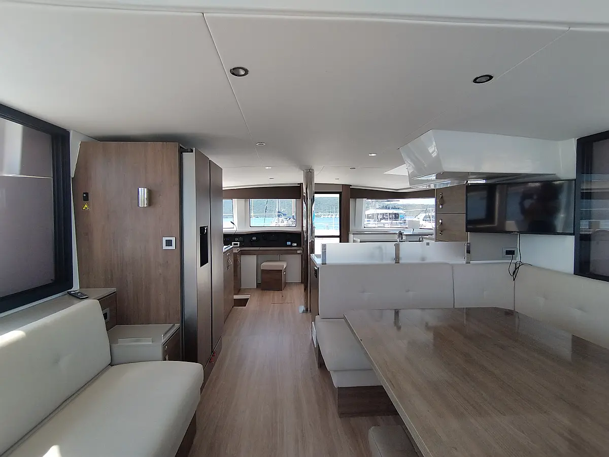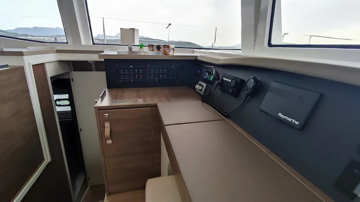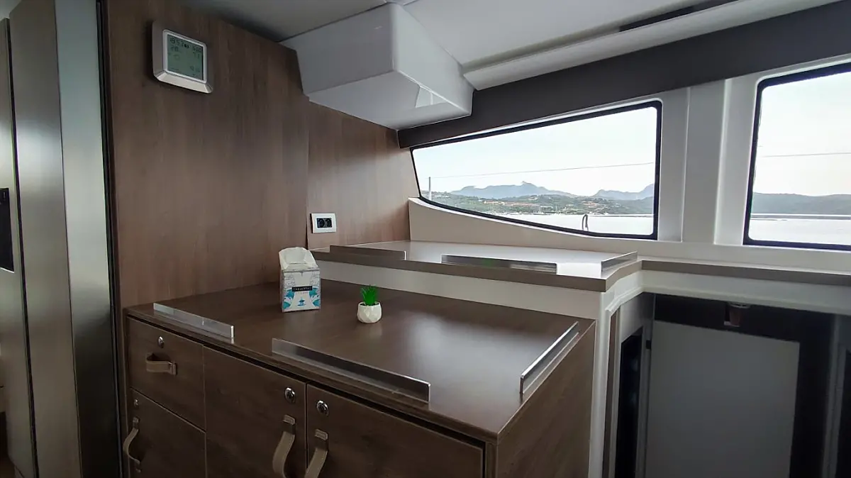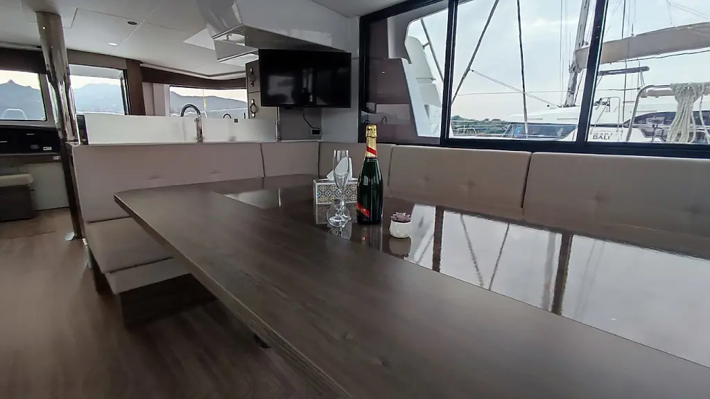 Cockpit cushions, Barbecue grill in cockpit, Electric toilet, Refrigerator, Electric winches, Hydraulic gangway, Inverter, Solar Panels