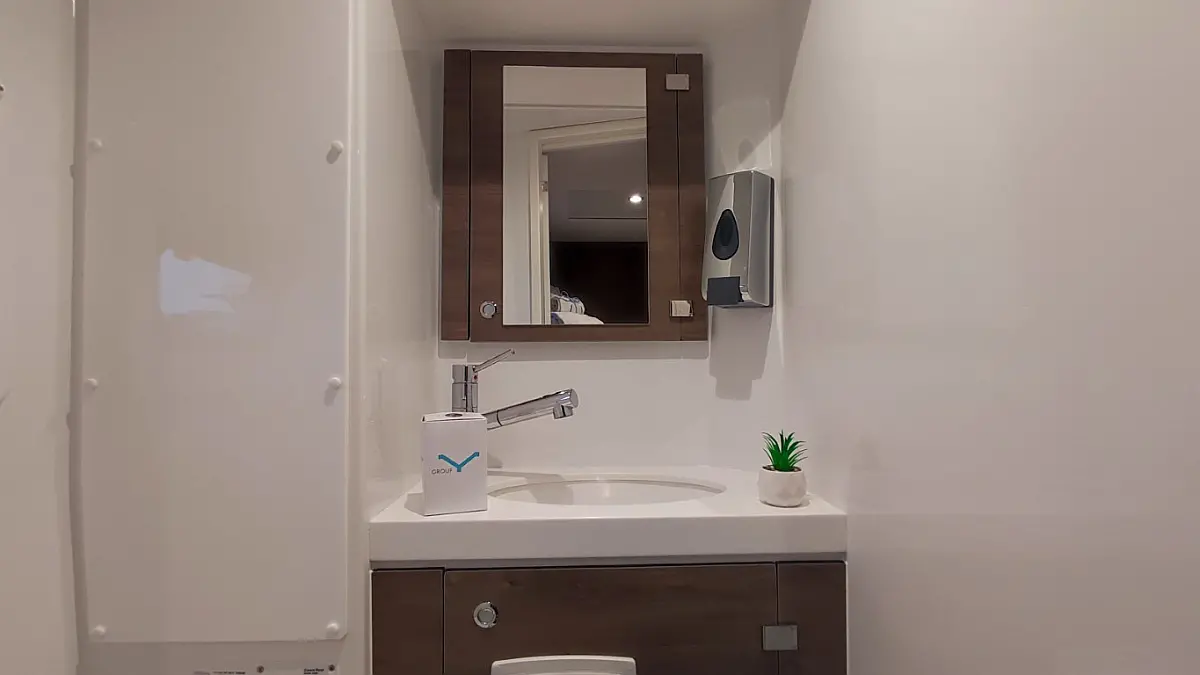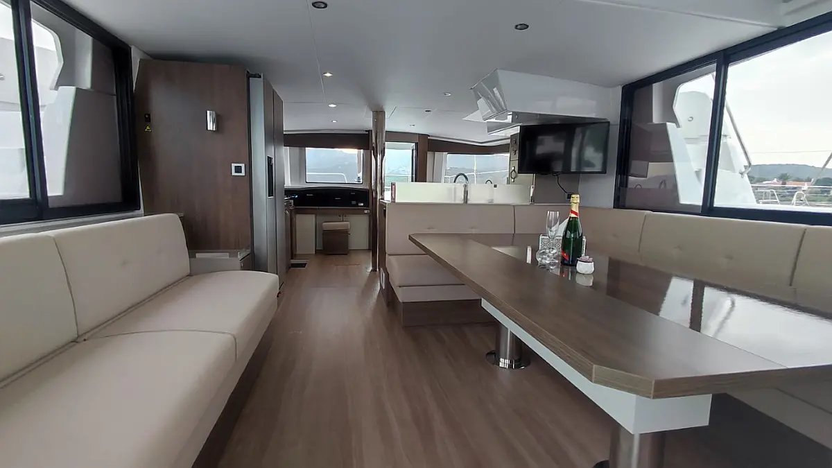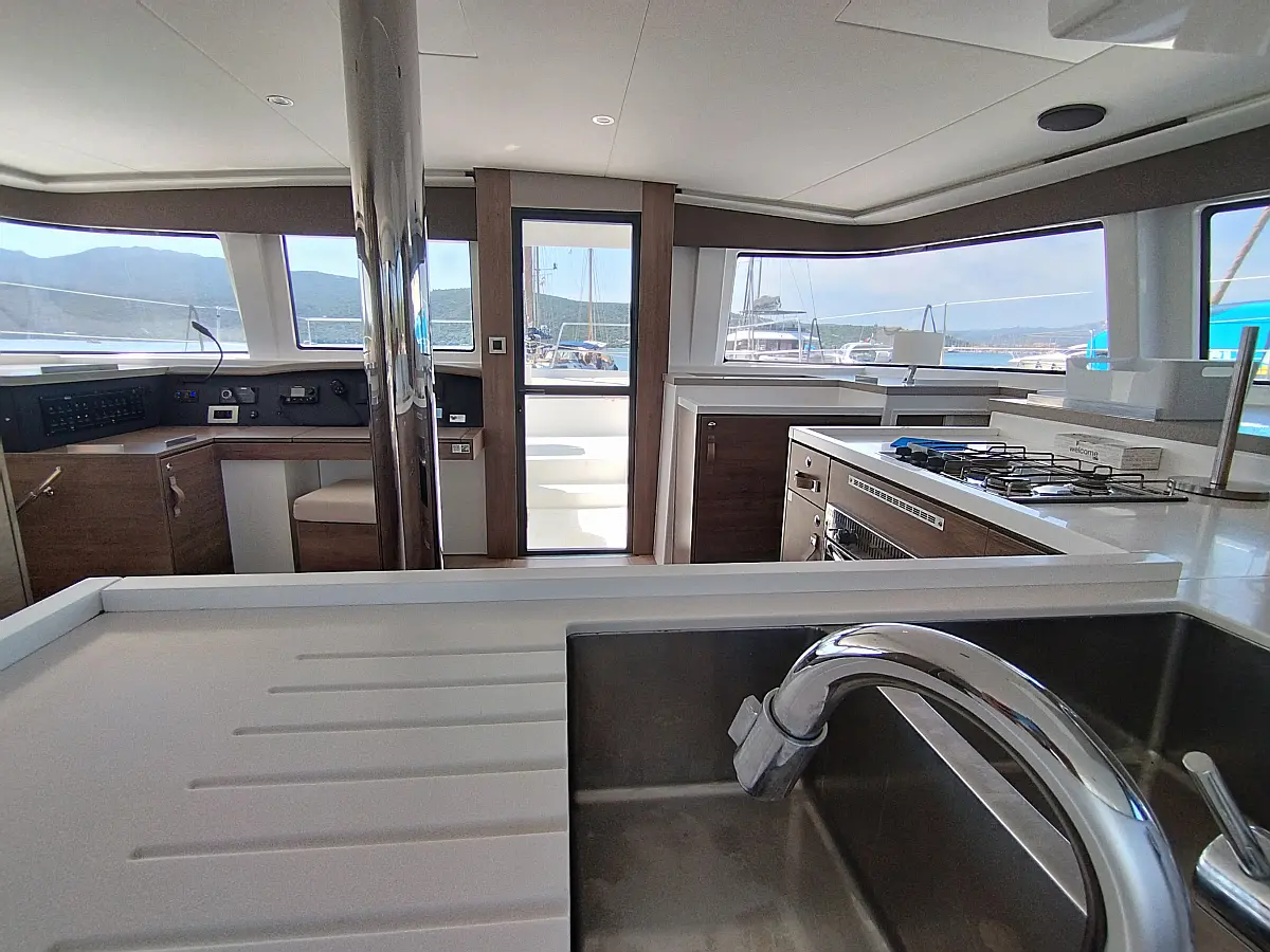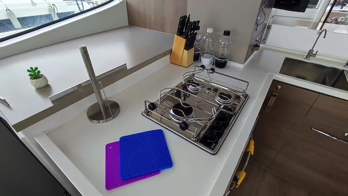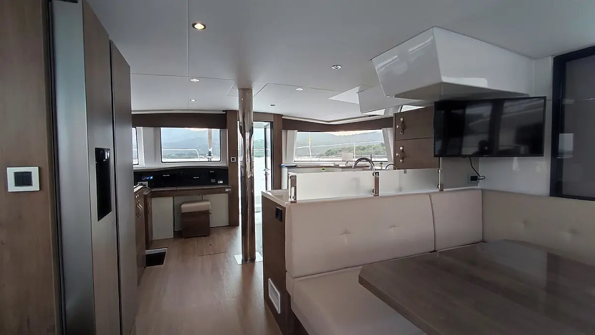 Cockpit cushions, Barbecue grill in cockpit, Electric toilet, Refrigerator, Electric winches, Hydraulic gangway, Inverter, Solar Panels