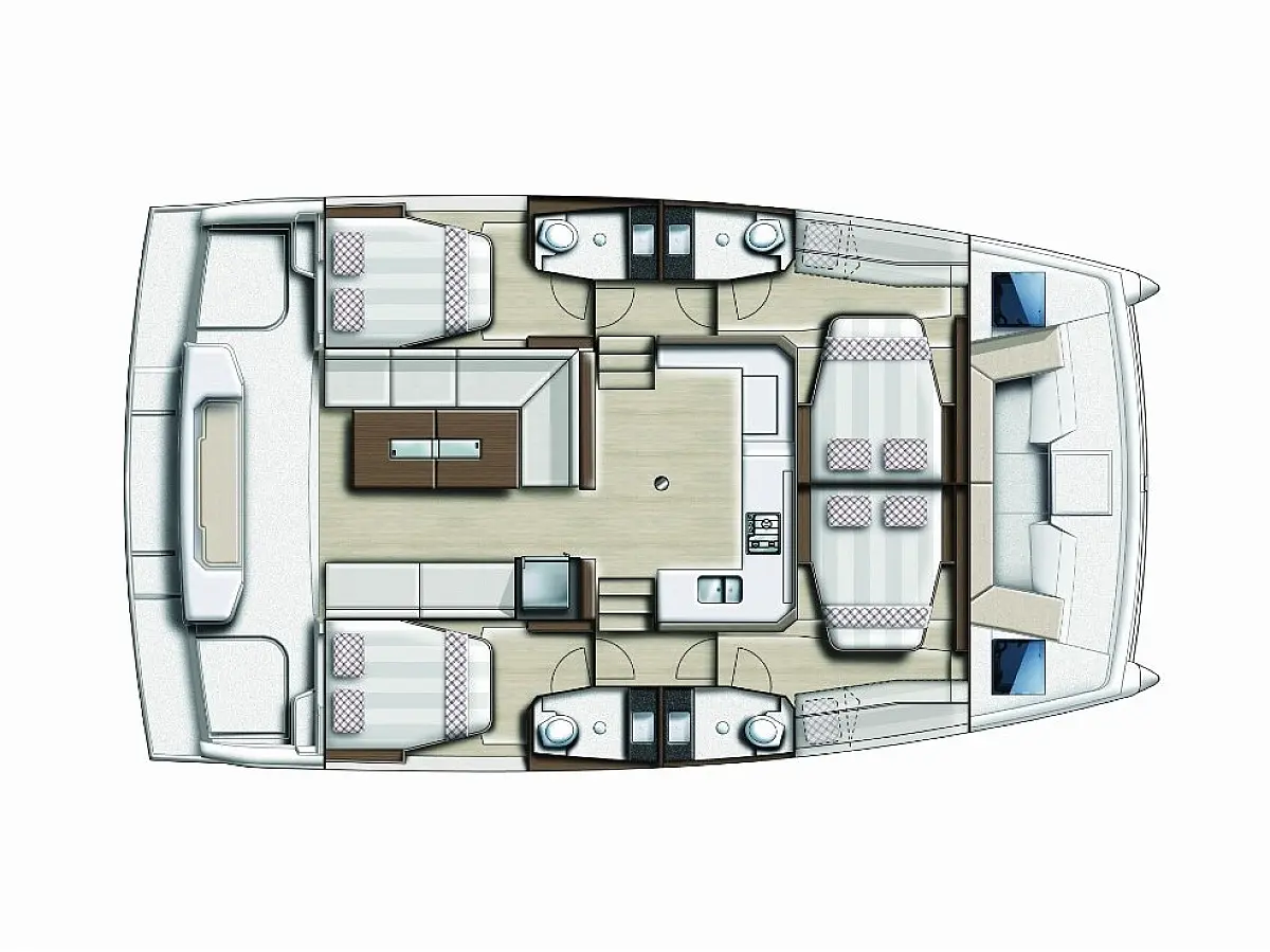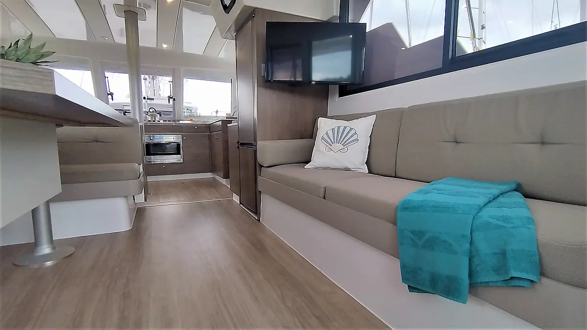 Cockpit cushions, Barbecue grill in cockpit, Electric toilet, Refrigerator, Electric winches, Inverter, Solar Panels