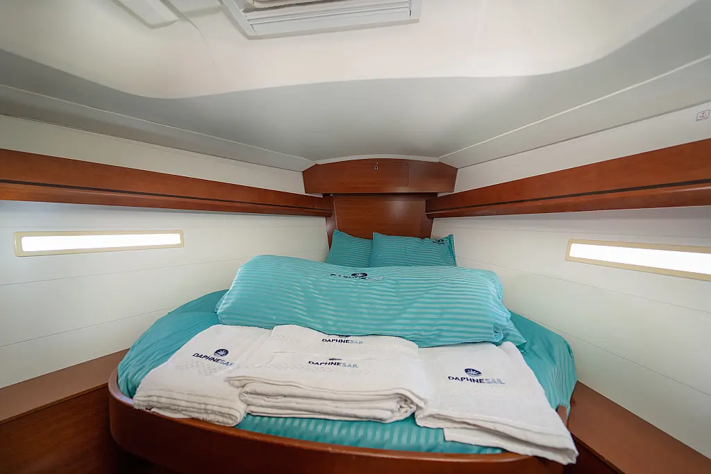 Bimini, Cockpit cushions, Dinghy, Sprayhood, Swimming platform, Outboard engine, Holding tank, Inverter, Solar Panels, Heating, Cockpit speakers, Refrigerator