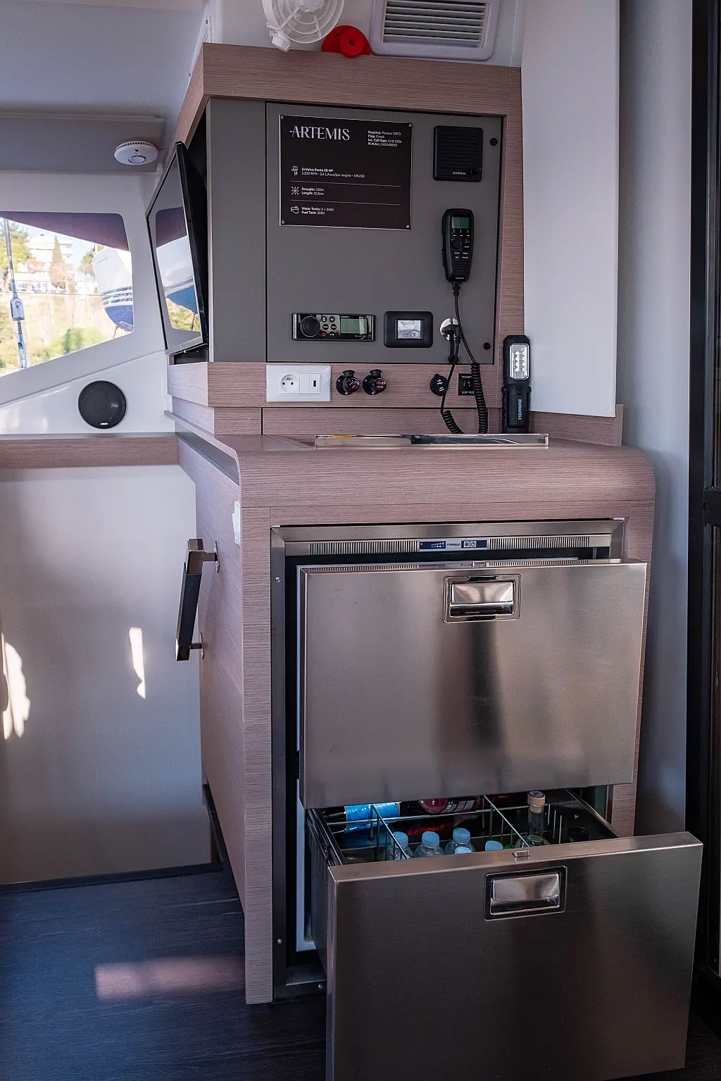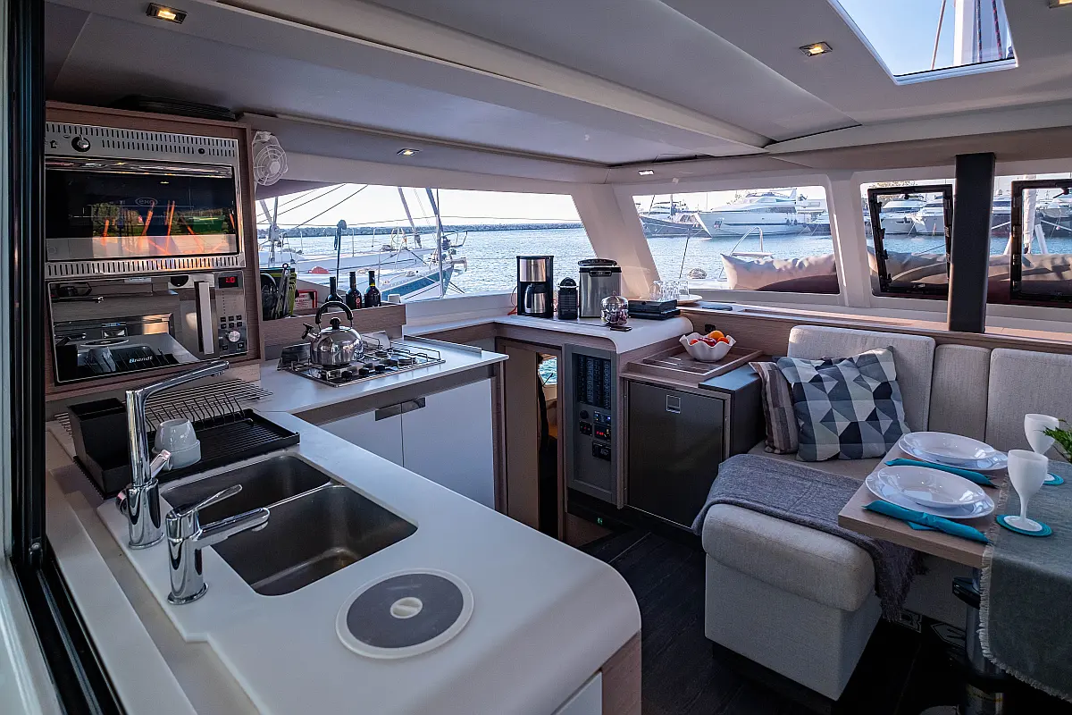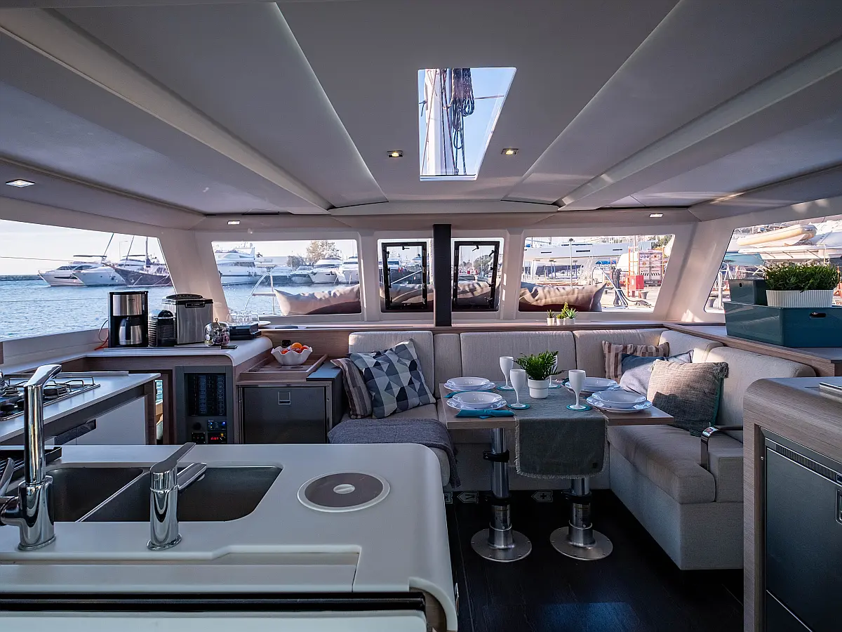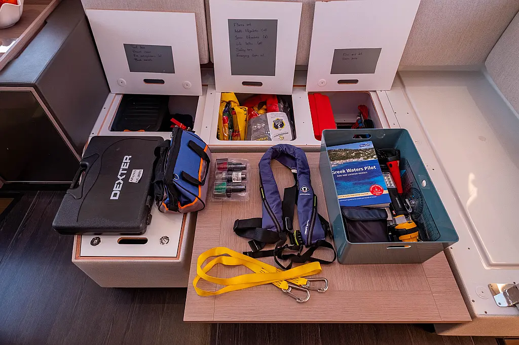 Refrigerator, Cockpit speakers, Electric winches, Dinghy, Air condition, Generator, Inverter, Electric toilet, Solar Panels, Water maker, Outboard engine, Cockpit cushions, Teak Cockpit