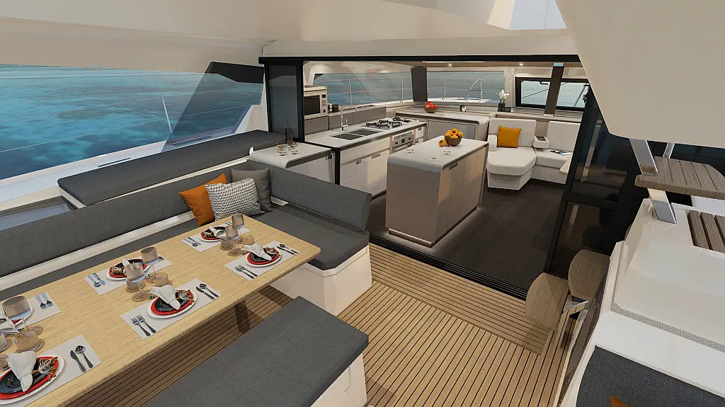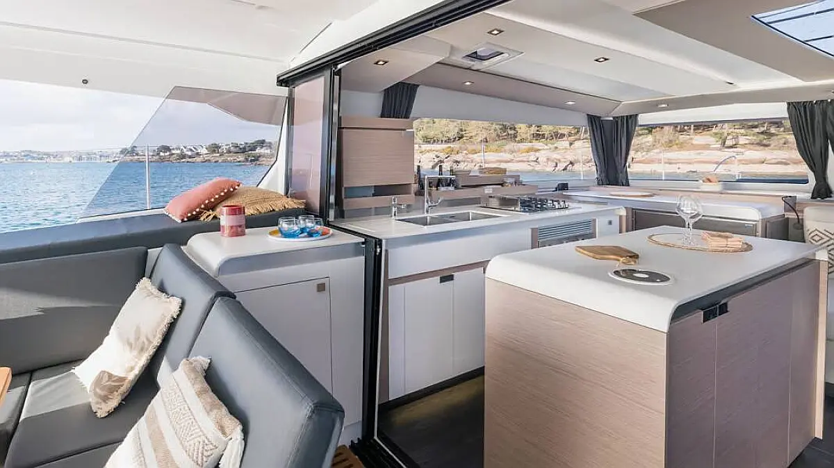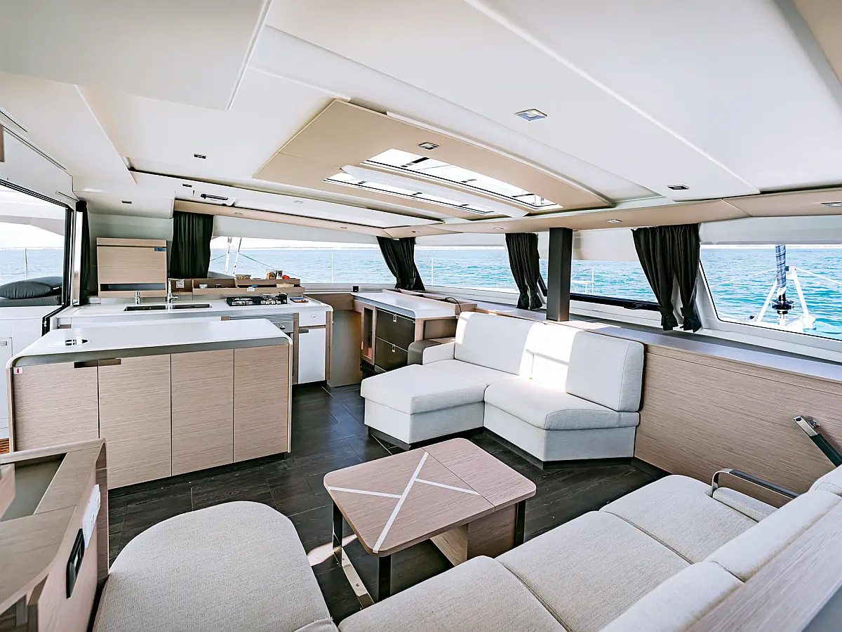 Electric winches, Ice maker, Air condition, Dinghy, Wi-Fi & Internet, Coffee maker, Hydraulic gangway, Flybridge, Generator, Swimming platform, Outboard engine, Water maker, Electric toilet, Solar Panels, Inverter, Refrigerator, Cockpit cushions