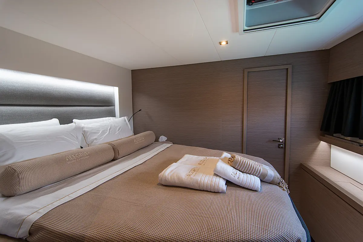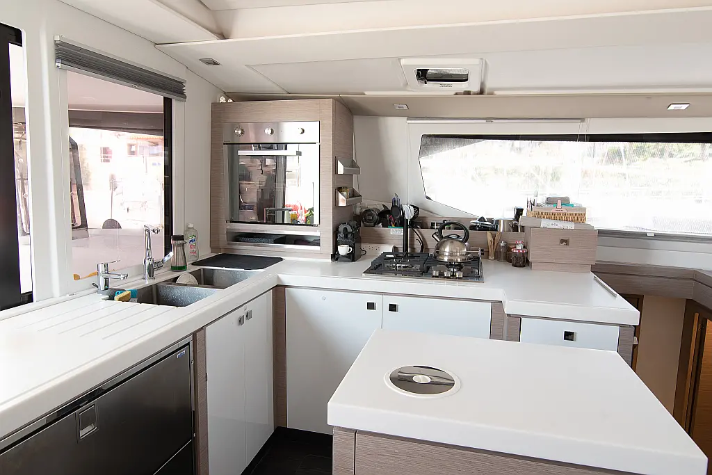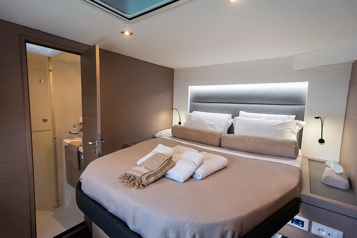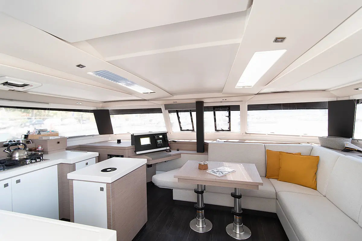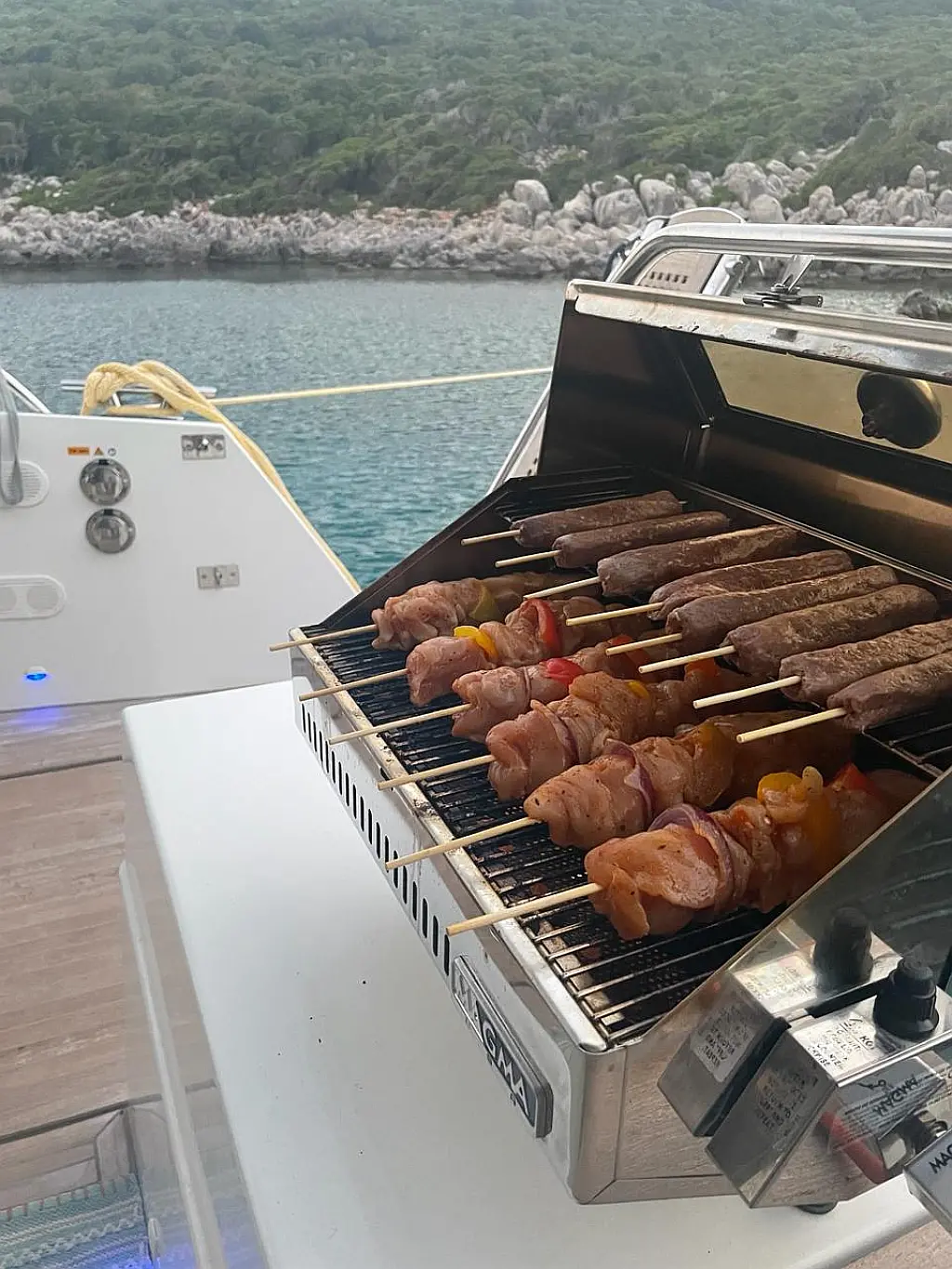 Barbecue grill in cockpit, Cockpit speakers, Swimming platform, Teak deck, Cockpit cushions, Bimini, Ice maker, Coffee maker, Refrigerator, Generator, Inverter, Water maker, Electric winches, Solar Panels, Air condition