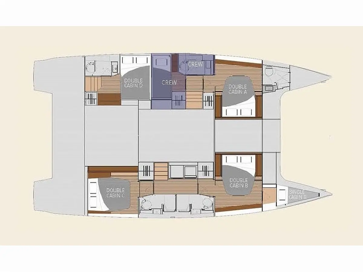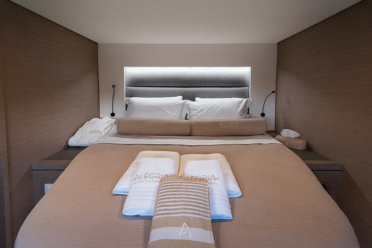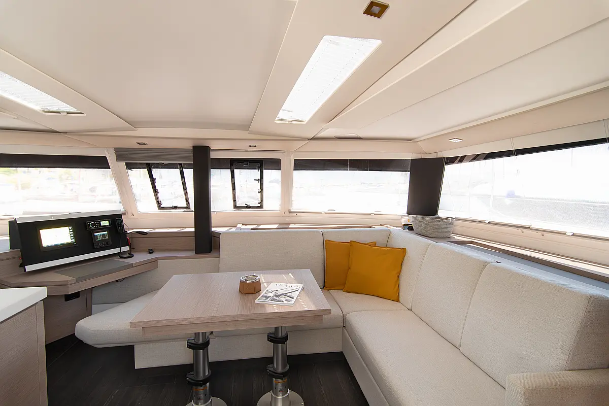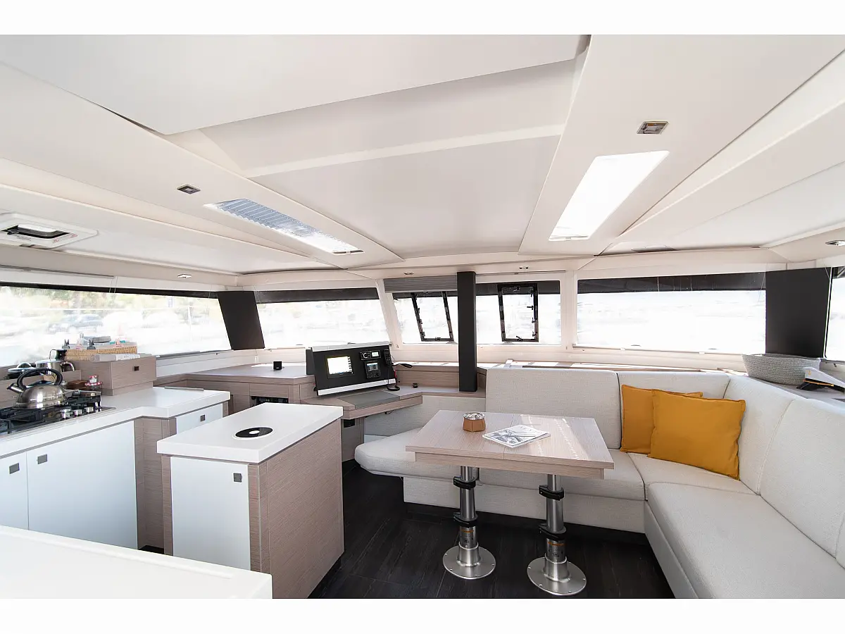 Barbecue grill in cockpit, Cockpit speakers, Swimming platform, Teak deck, Cockpit cushions, Bimini, Ice maker, Coffee maker, Refrigerator, Generator, Inverter, Water maker, Electric winches, Solar Panels, Air condition