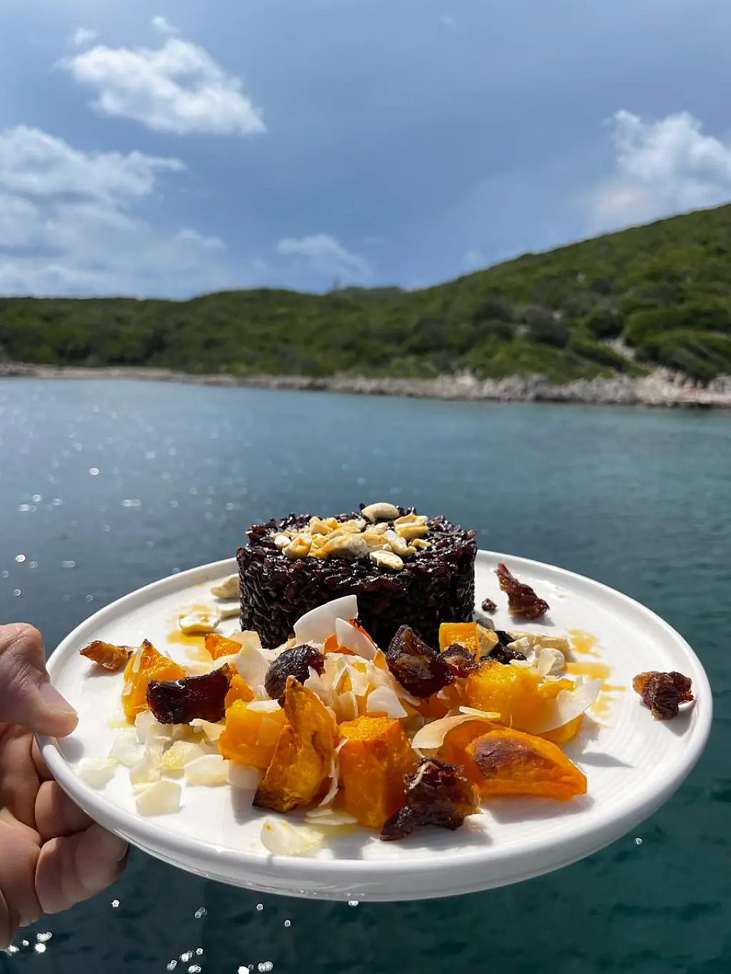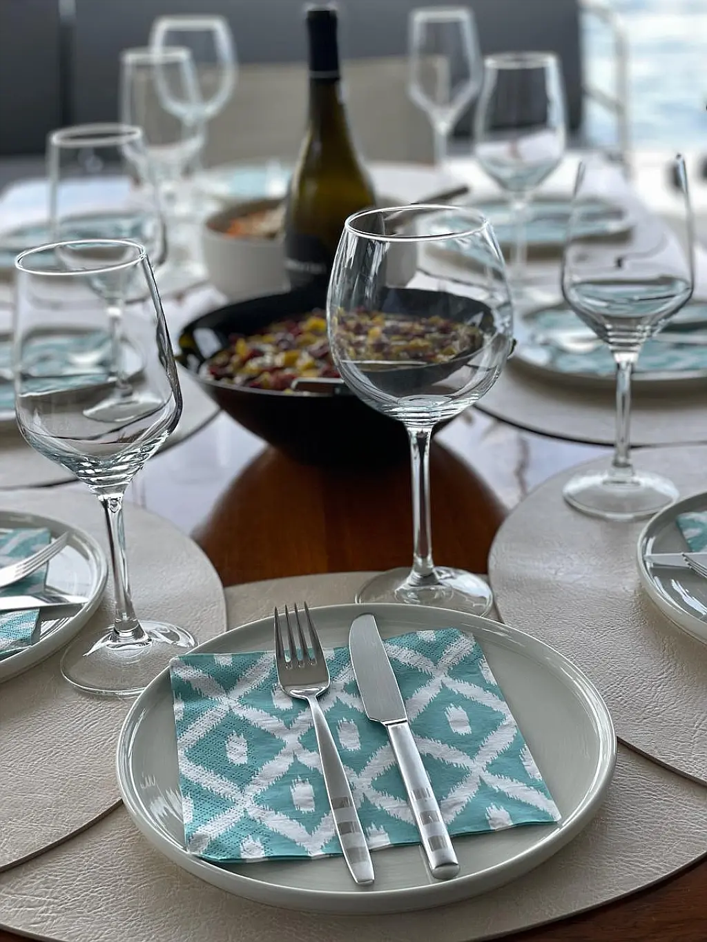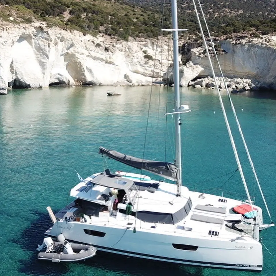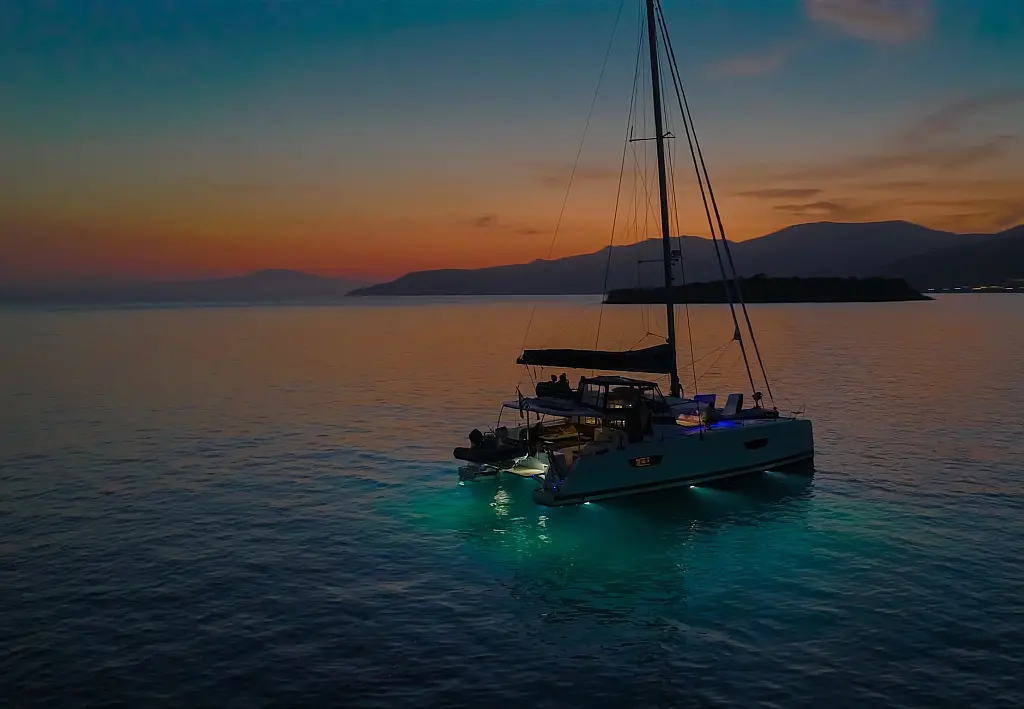 Barbecue grill in cockpit, Cockpit speakers, Swimming platform, Teak deck, Cockpit cushions, Bimini, Ice maker, Coffee maker, Refrigerator, Generator, Inverter, Water maker, Electric winches, Solar Panels, Air condition