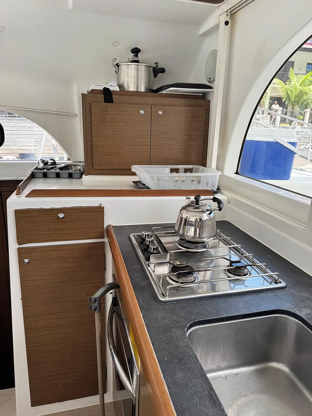 Refrigerator, Bimini, Dinghy, Outboard engine