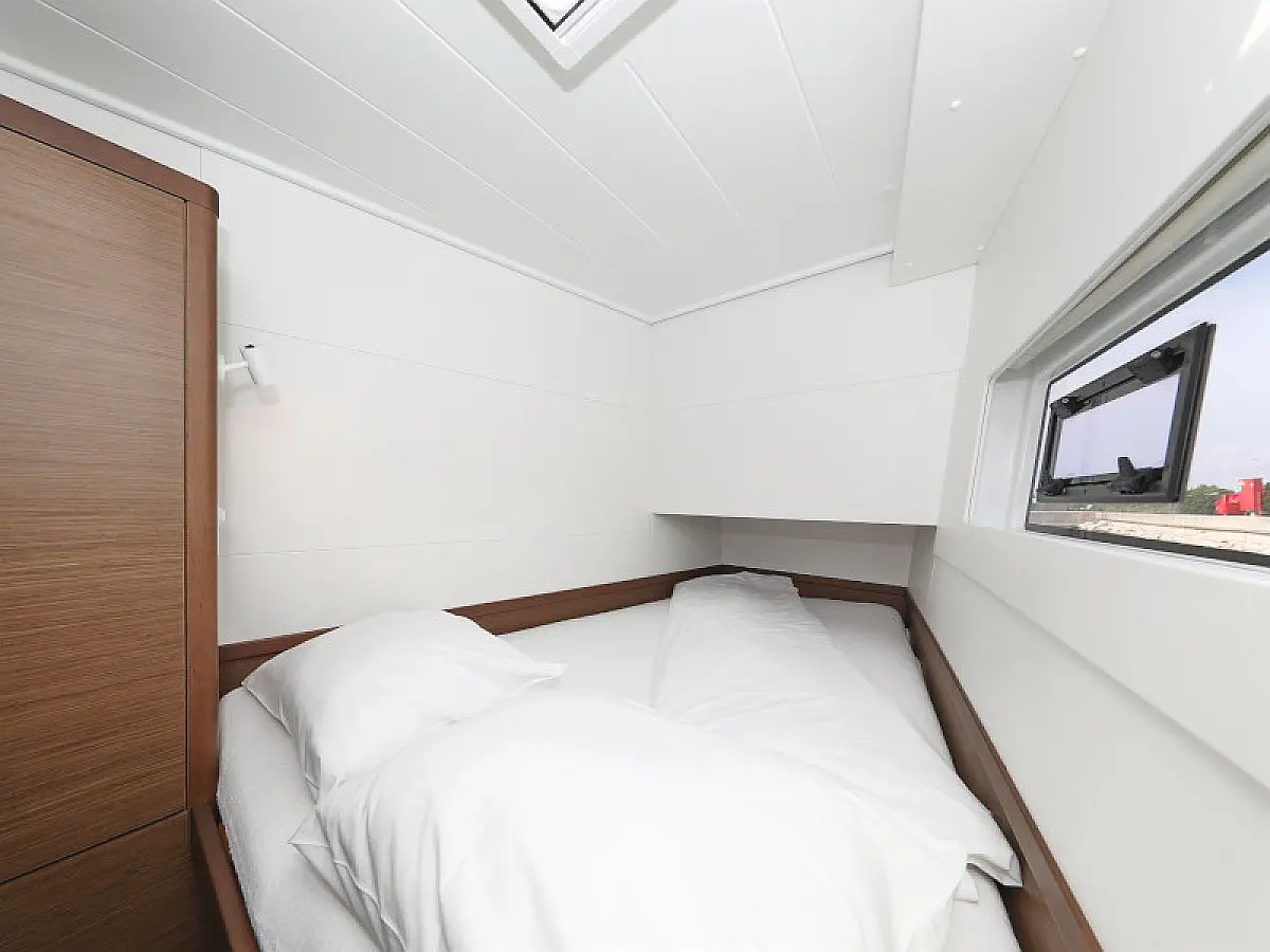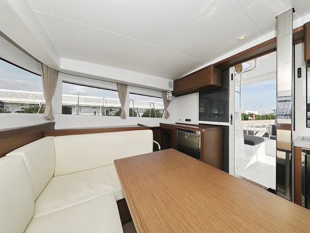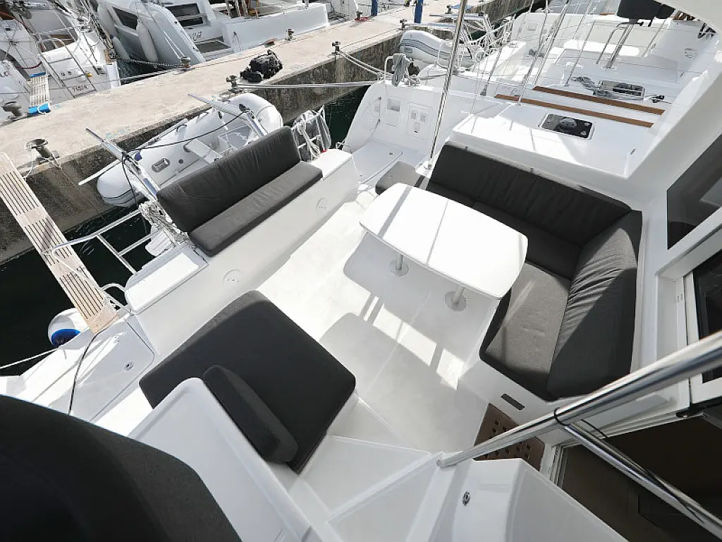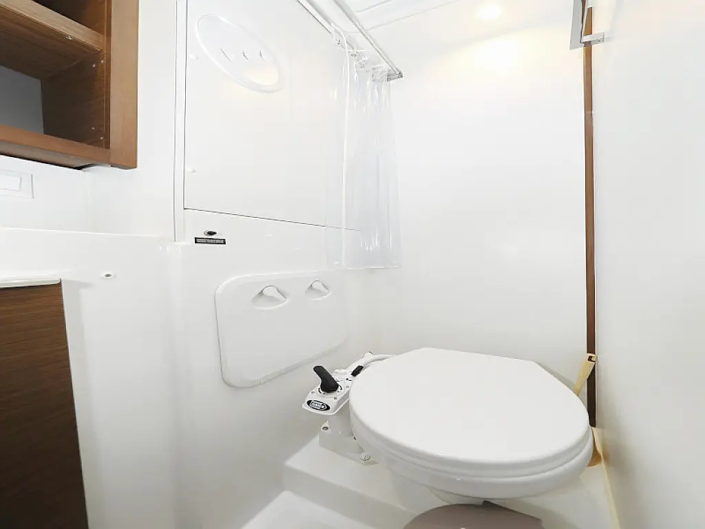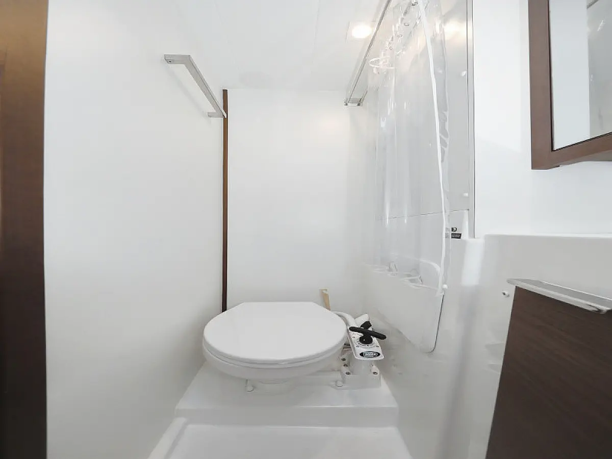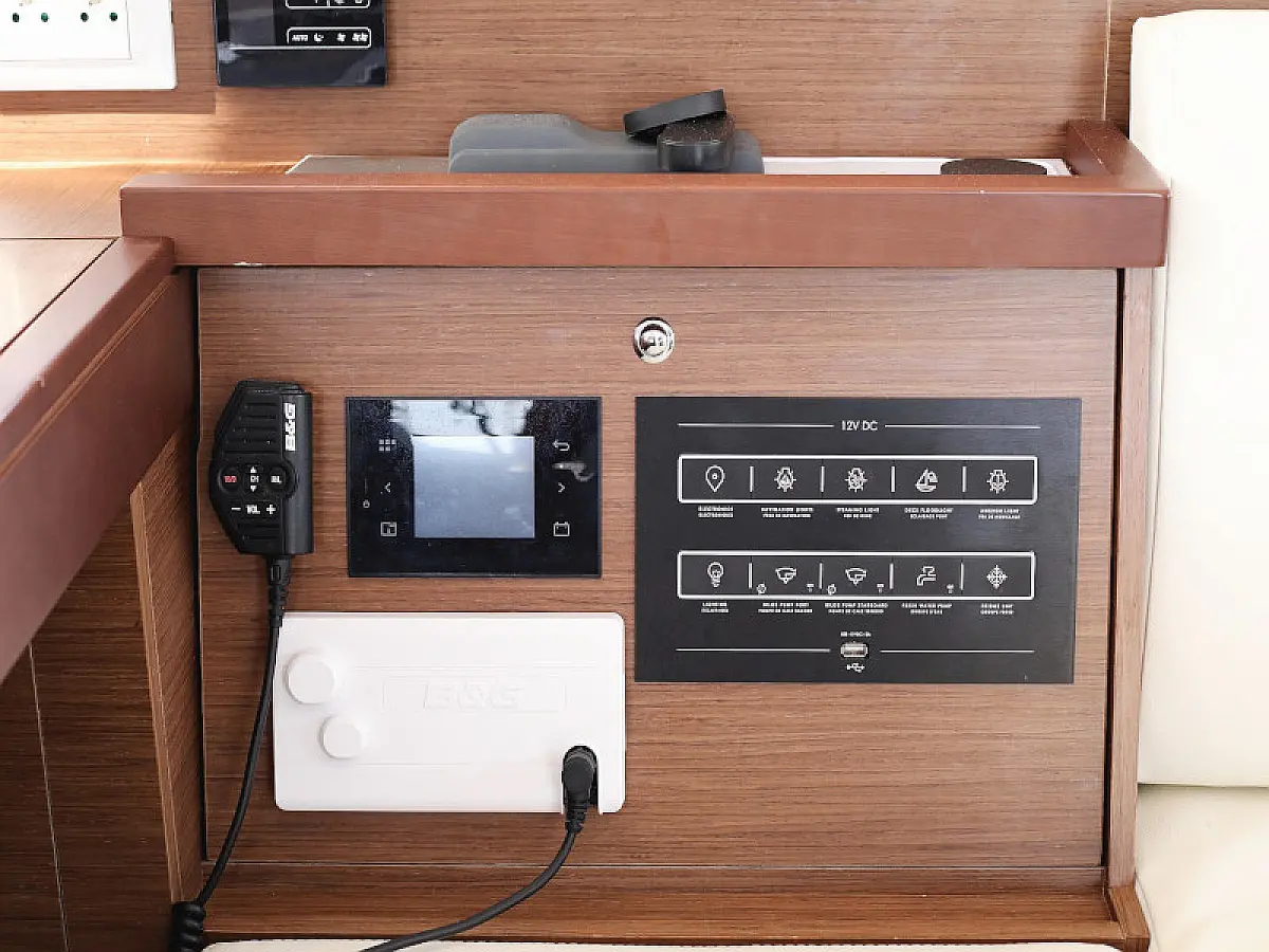 Electric winches, Bimini, Cockpit cushions, Air condition, Generator, Electric toilet, Refrigerator