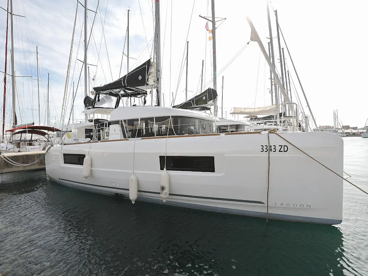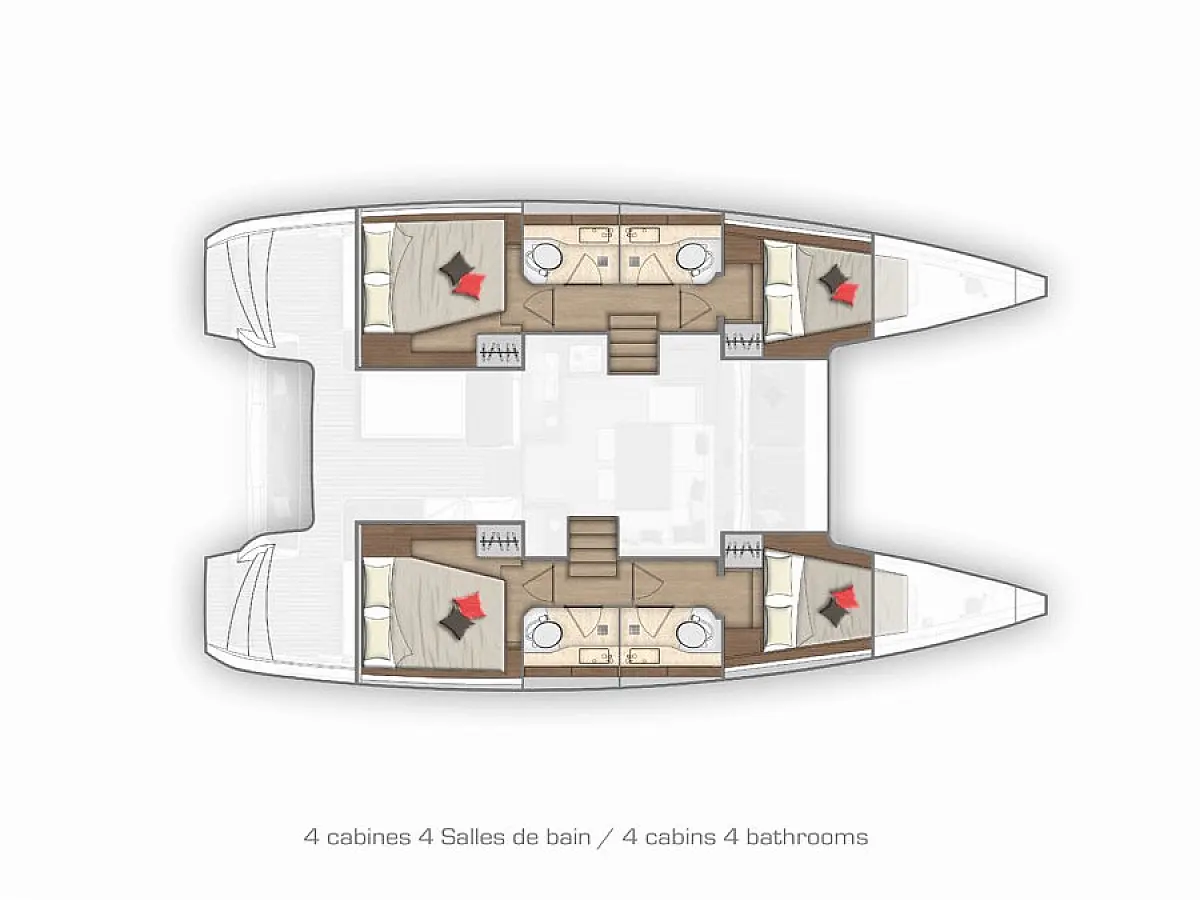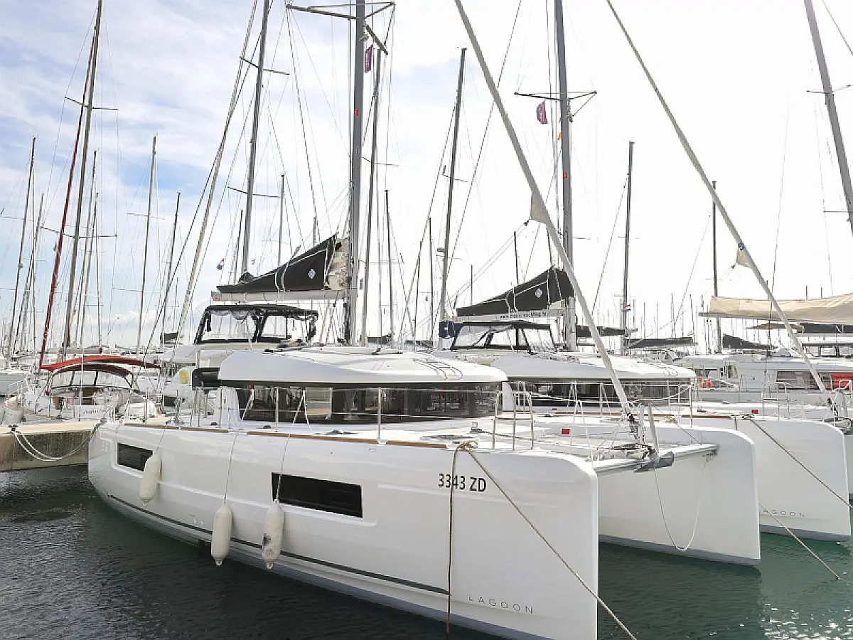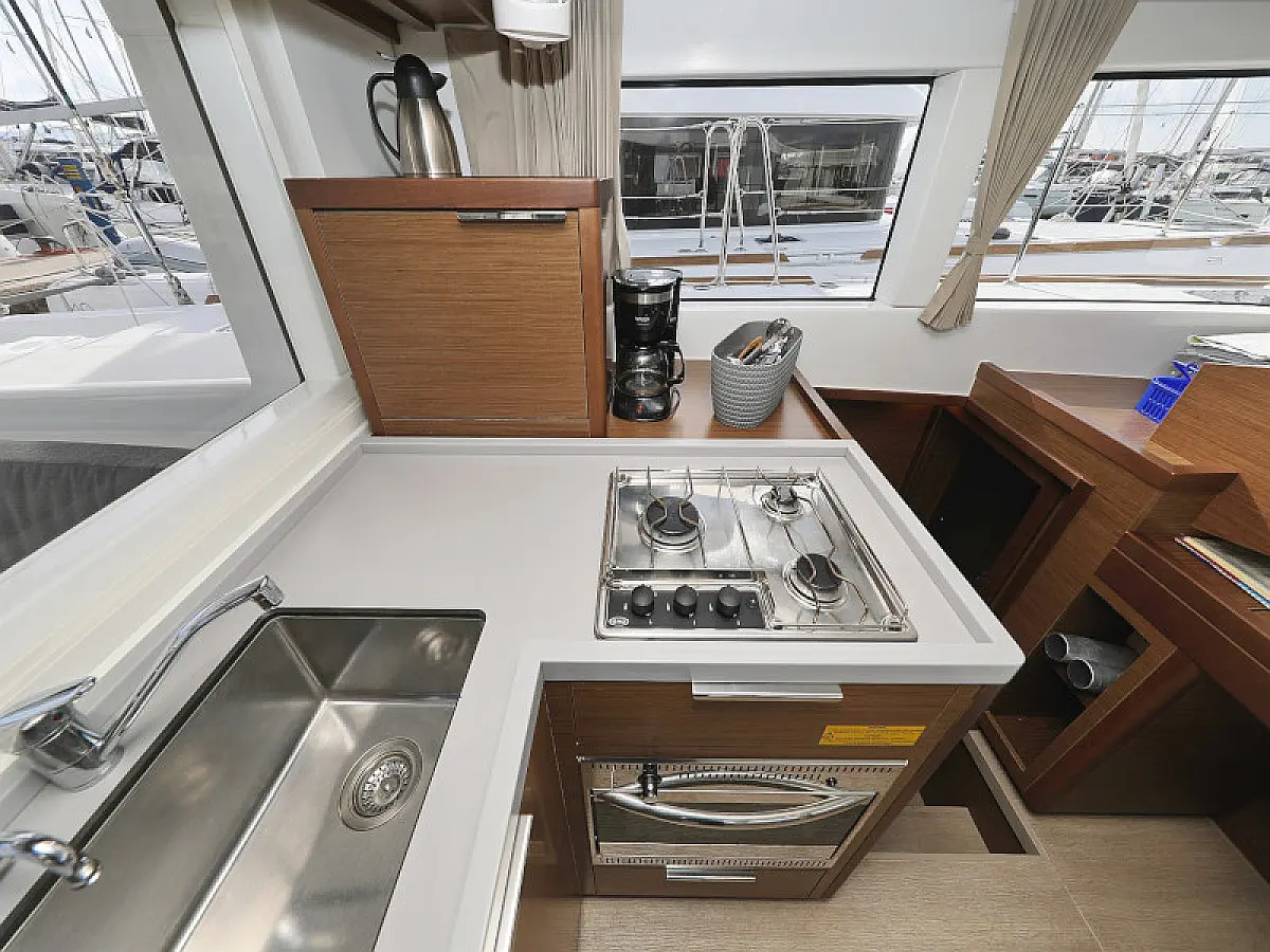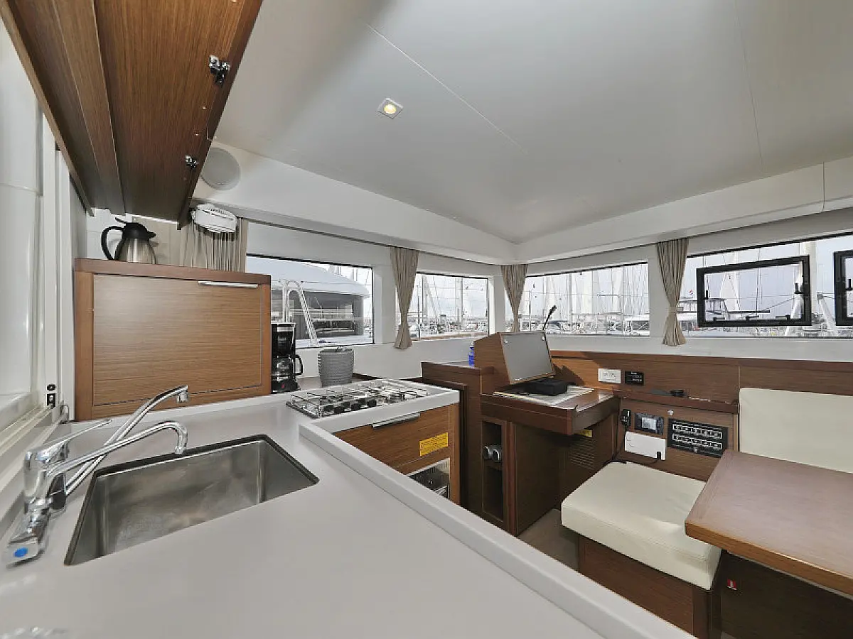Electric winches, Bimini, Cockpit cushions, Air condition, Generator, Electric toilet, Refrigerator