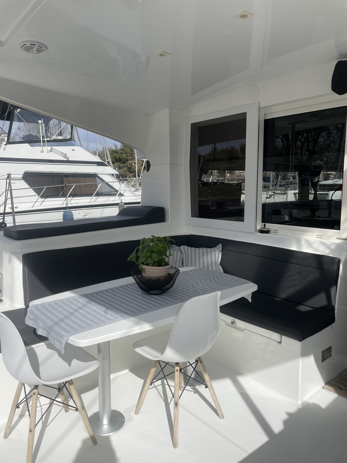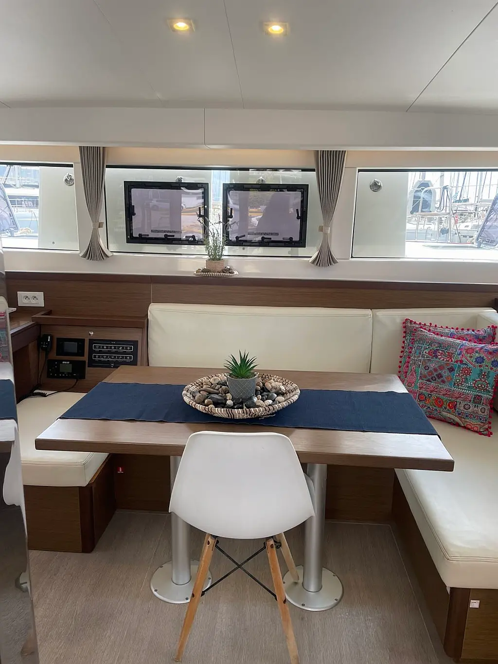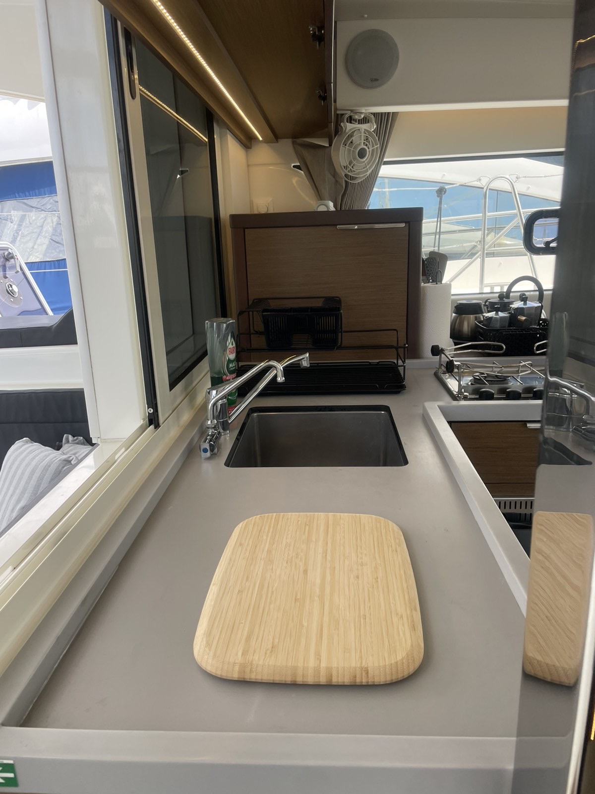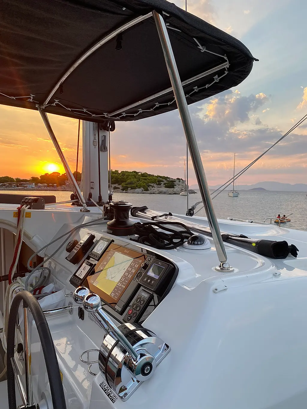 Refrigerator, Bimini, Cockpit speakers, Electric toilet, Electric winches, Dinghy