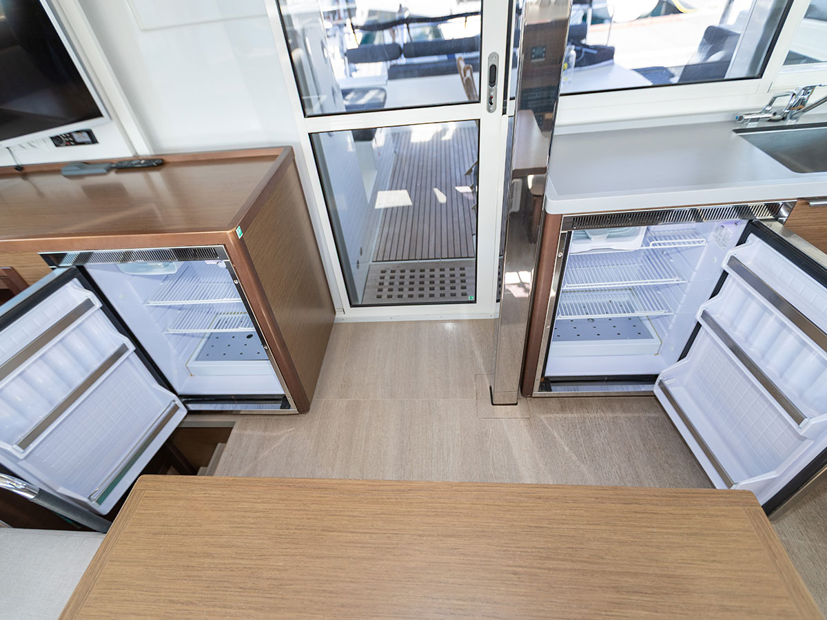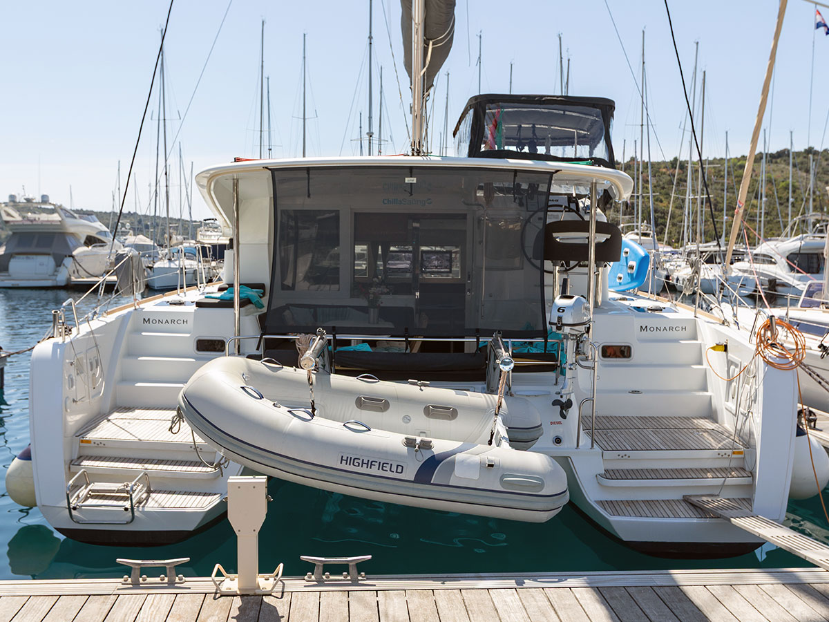 Teak Cockpit, Cockpit cushions, Dinghy, Flybridge, Bimini, Outboard engine, Cockpit speakers, Ice maker, Refrigerator, Generator, Air condition
