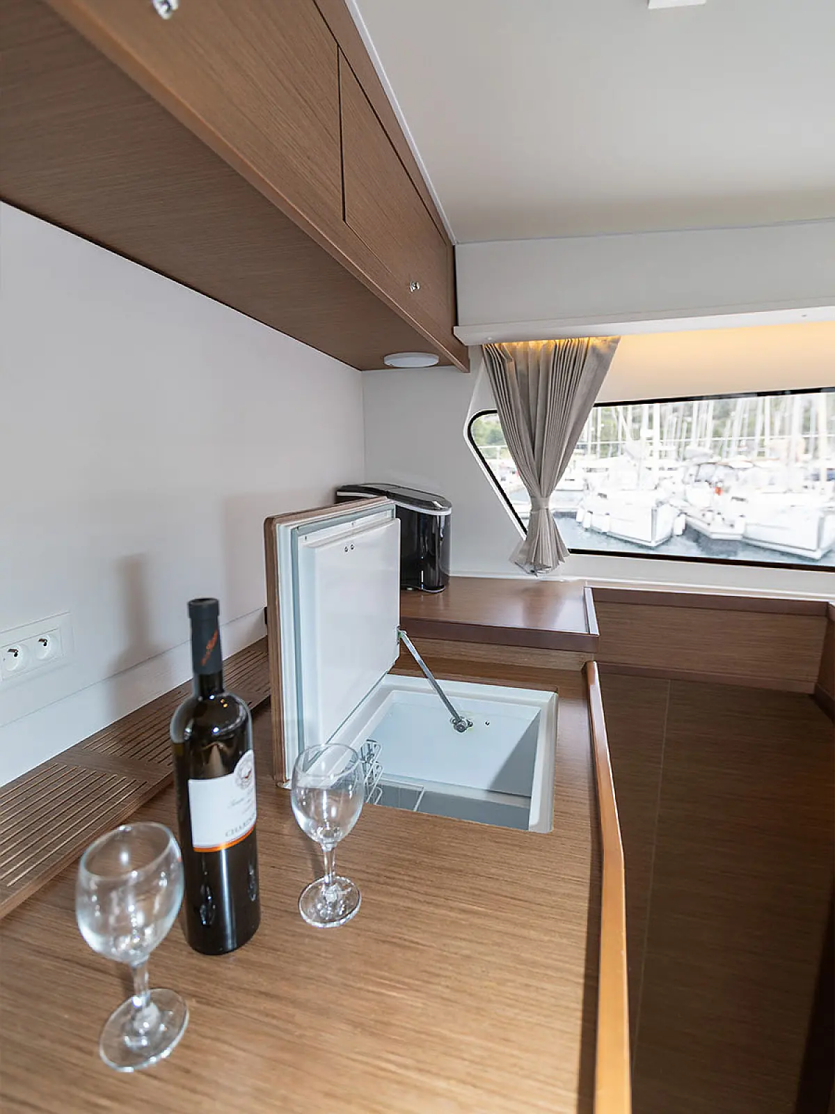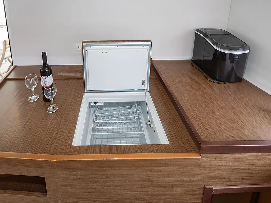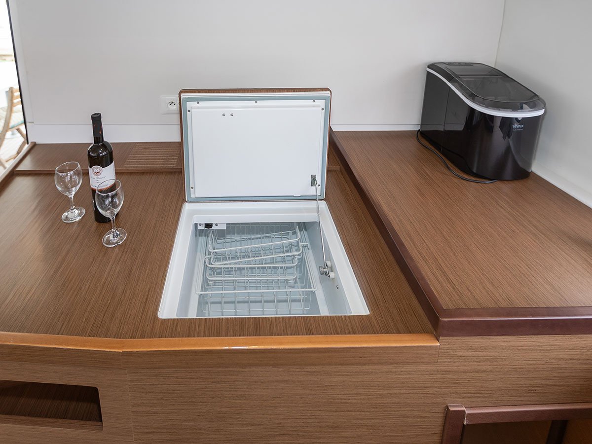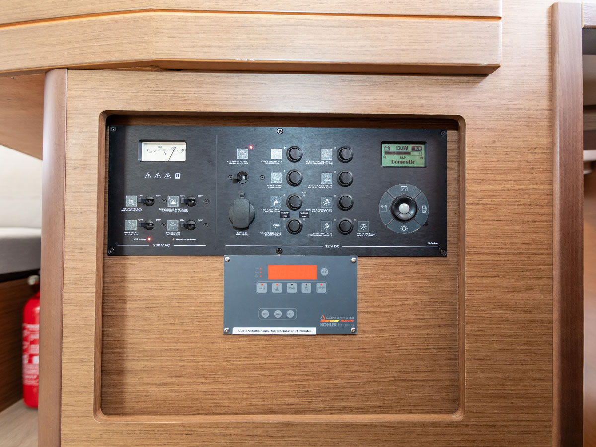 Teak Cockpit, Cockpit cushions, Dinghy, Refrigerator, Flybridge, Bimini, Outboard engine, Cockpit speakers, Ice maker, Generator, Air condition, Electric winches