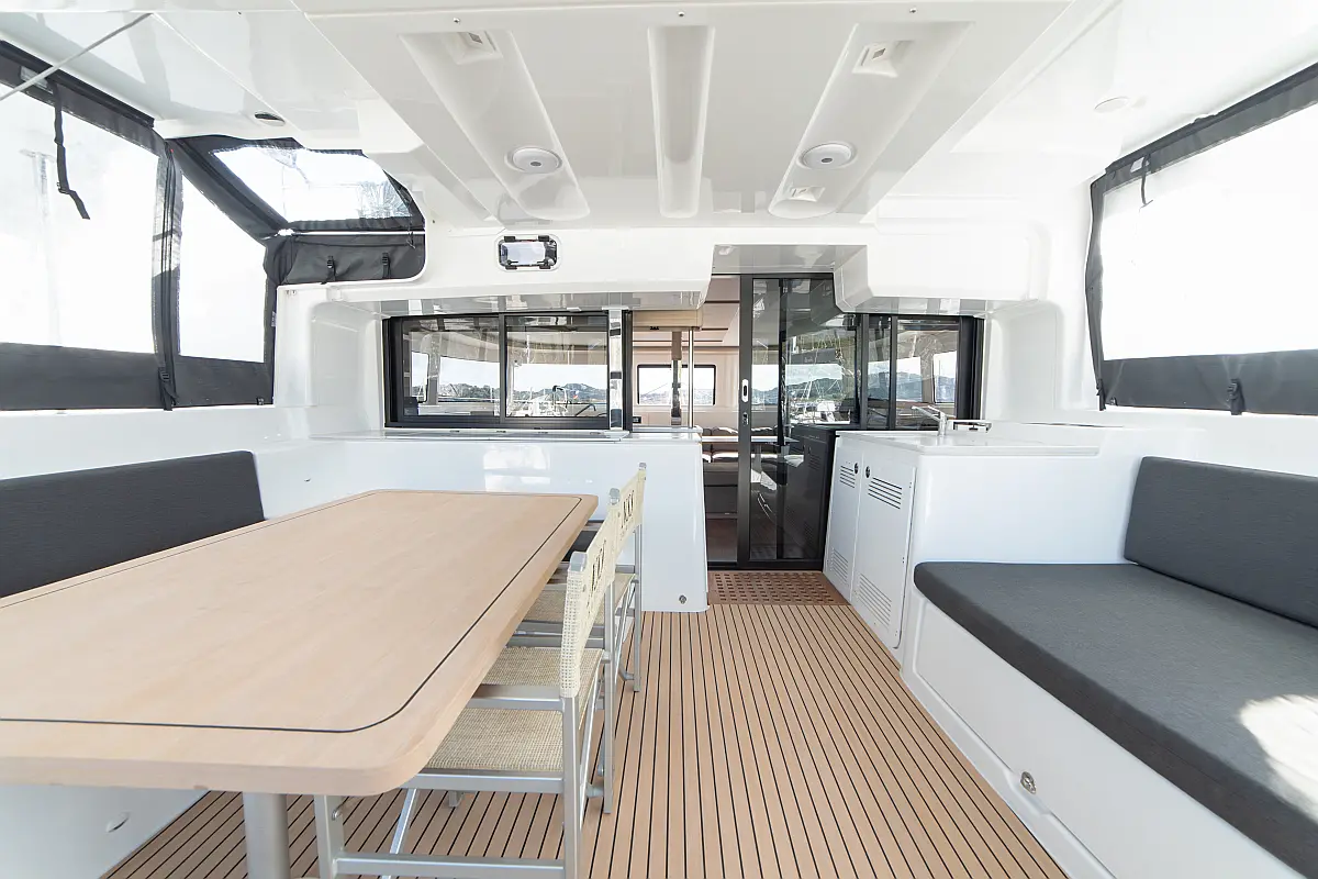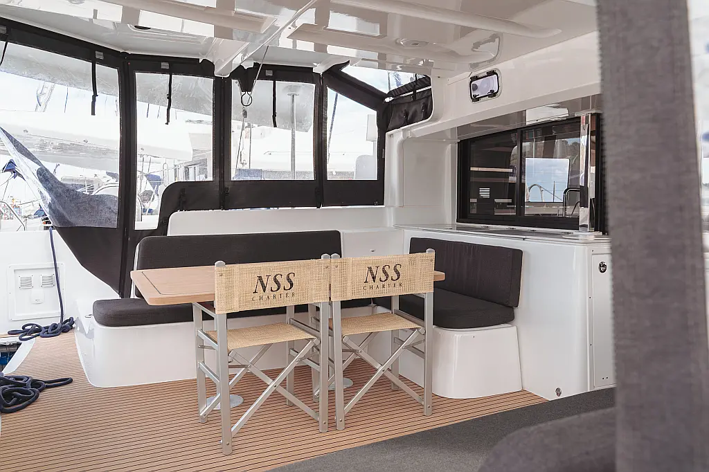 Cockpit cushions, Cockpit speakers, Coffee maker, Generator, Refrigerator, Bimini, Electric toilet, Air condition, Water maker