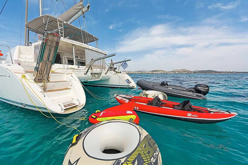 Air condition, Water maker, Cockpit speakers, Heating, Bimini, Swimming platform, Refrigerator, Generator, Dinghy, Sprayhood