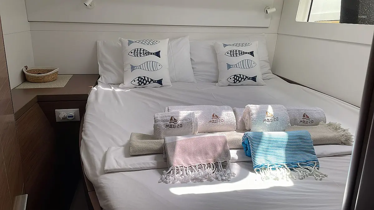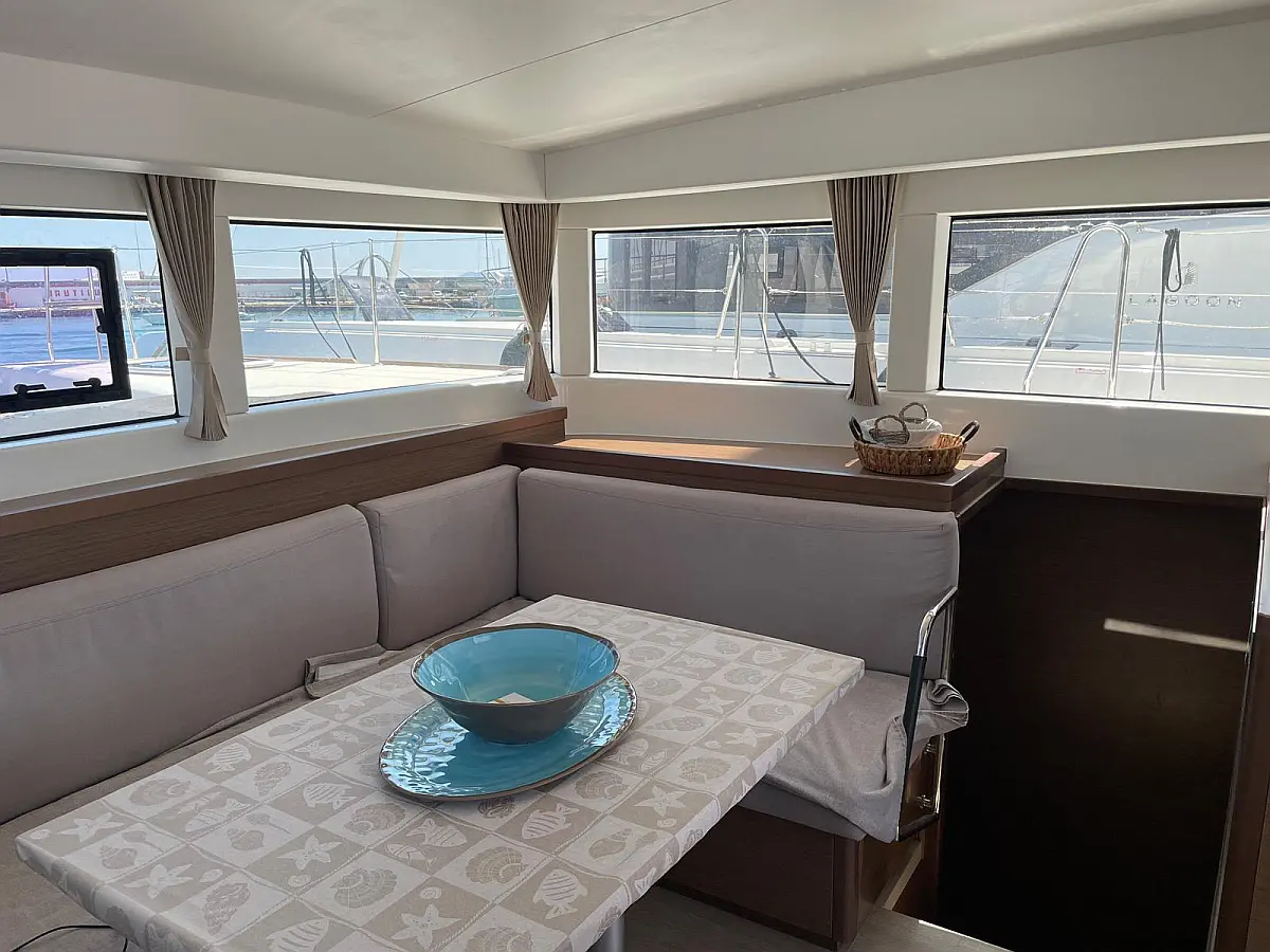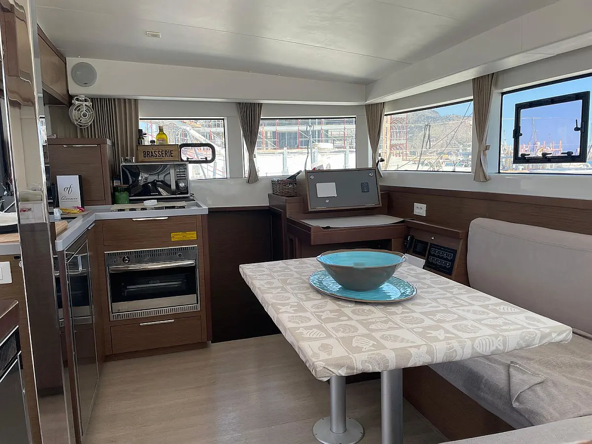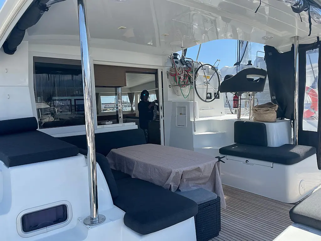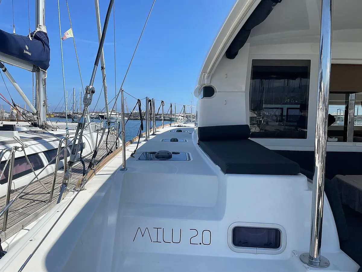 Electric toilet, Refrigerator, Teak deck, Bimini, Inverter, Dinghy, Cockpit speakers