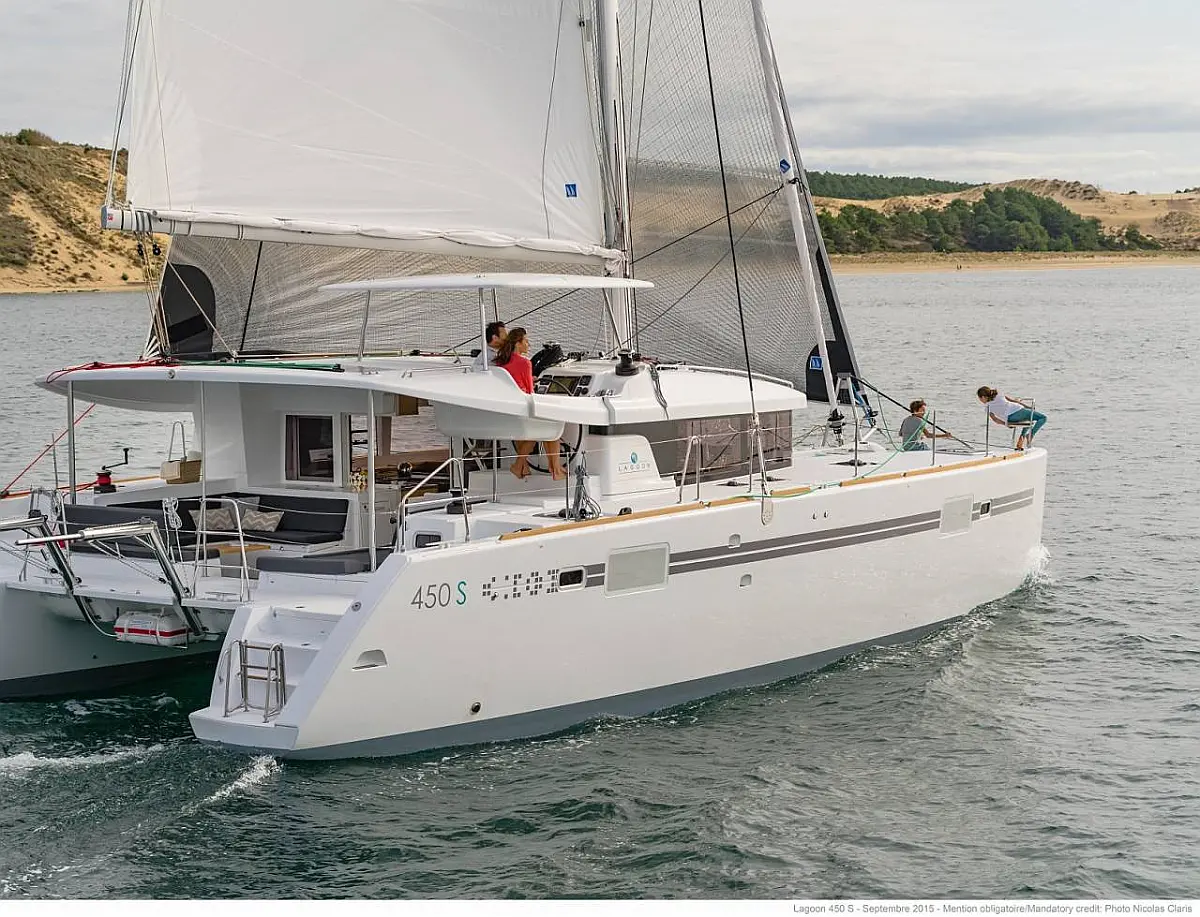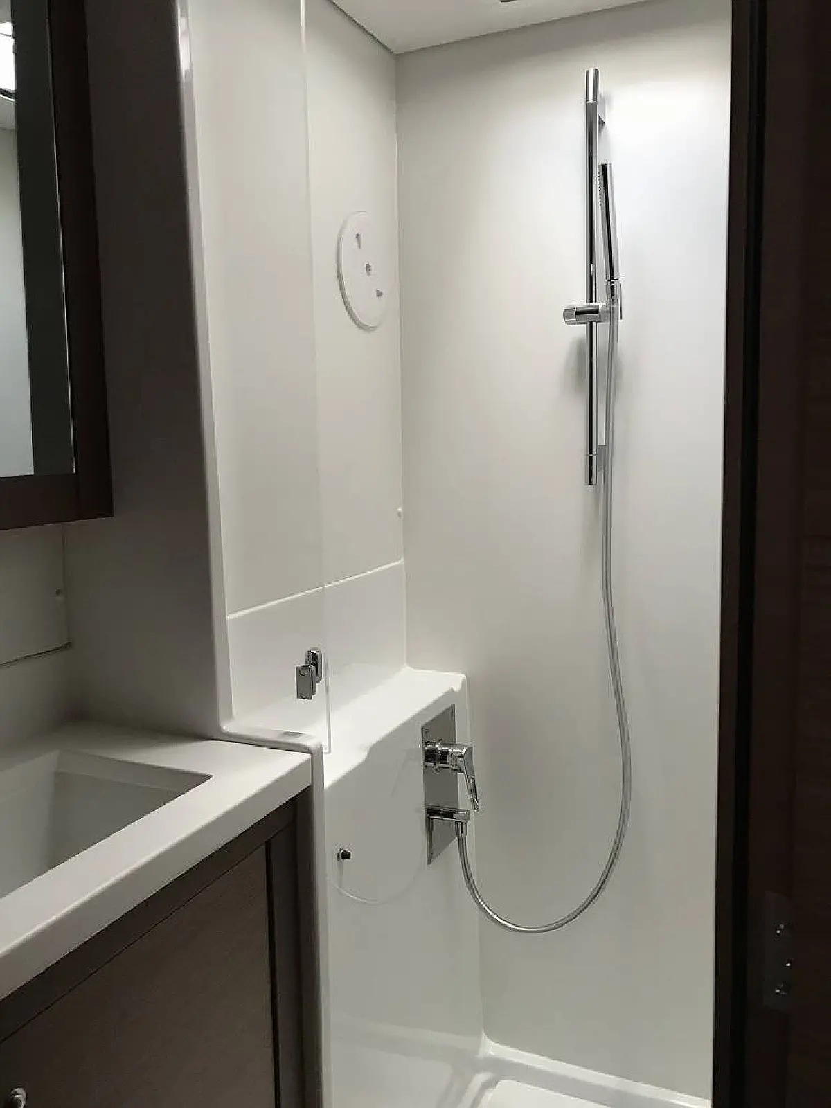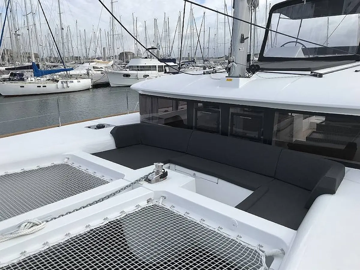 Refrigerator, Water maker, Bimini, Cockpit speakers, Dinghy, Outboard engine, Teak deck, Solar Panels