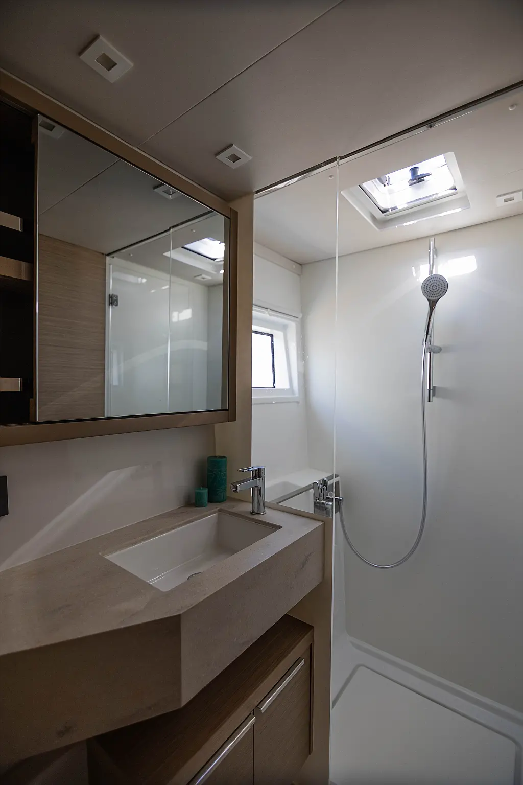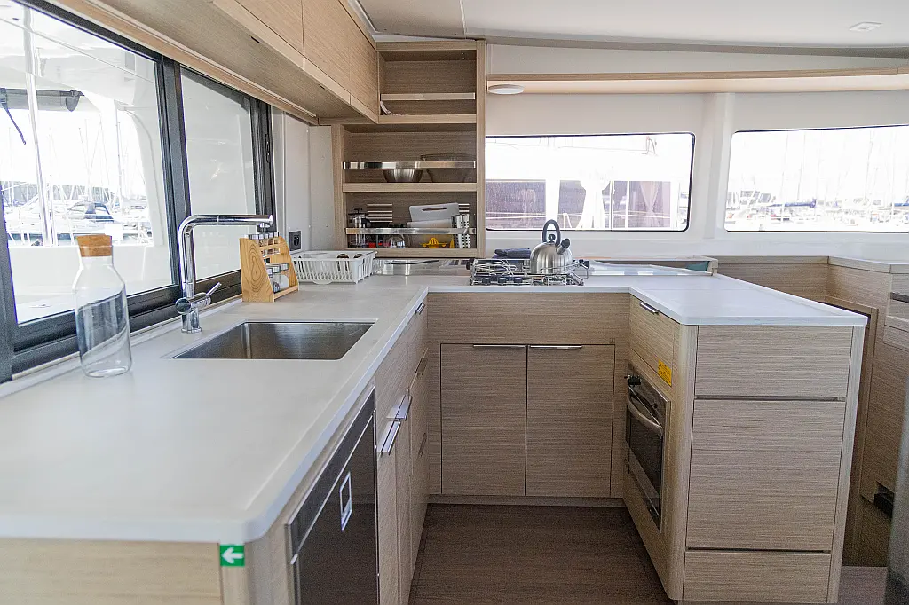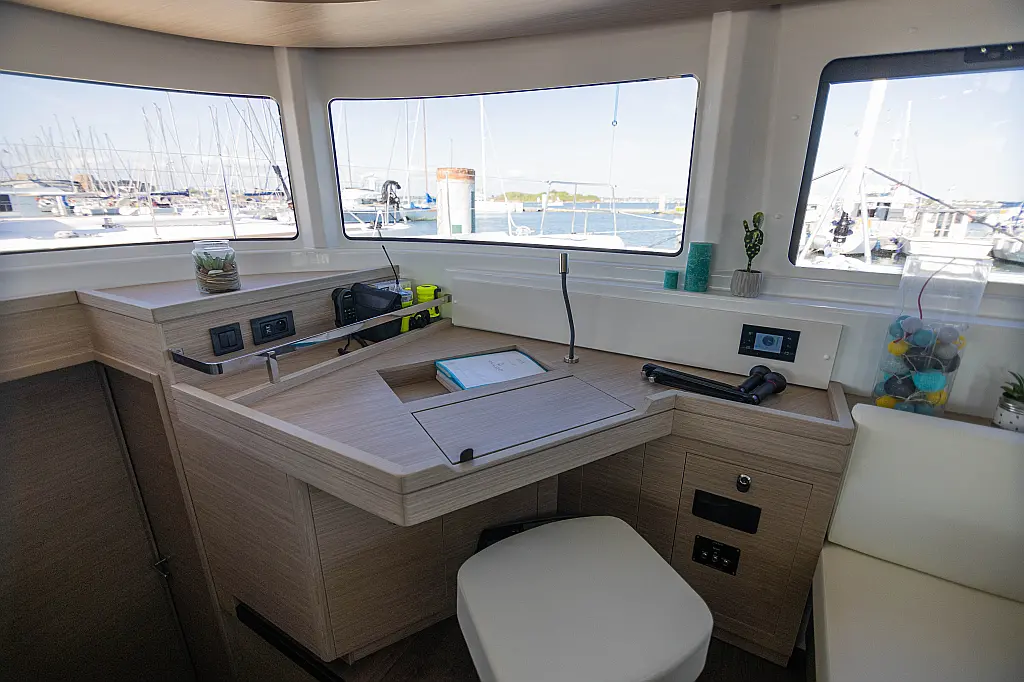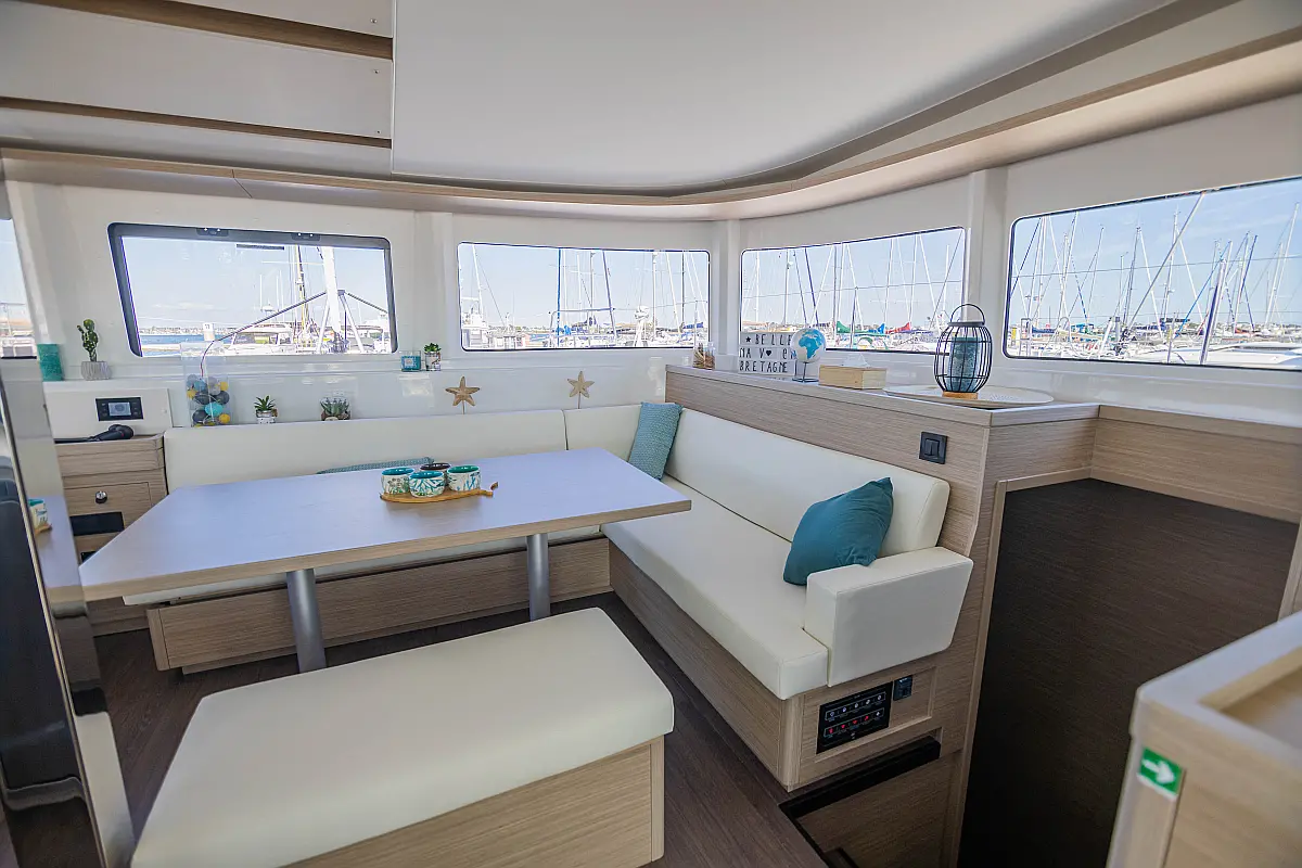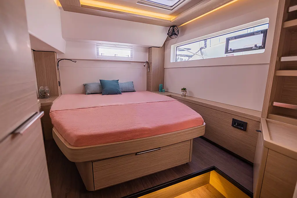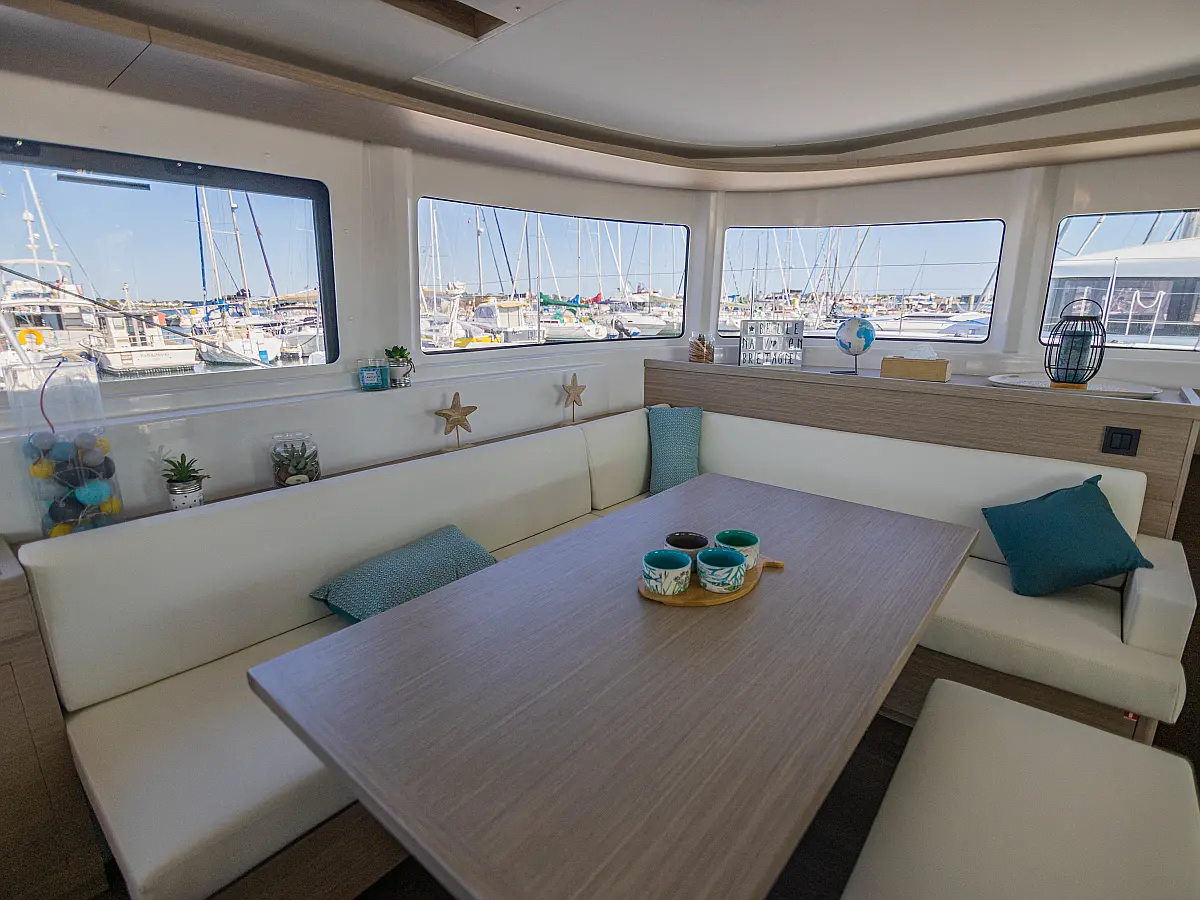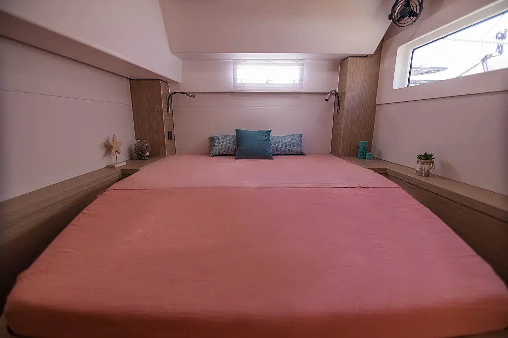 Refrigerator, Water maker, Bimini, Cockpit speakers, Dinghy, Outboard engine, Flybridge, Teak deck, Inverter, Solar Panels