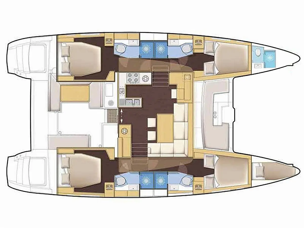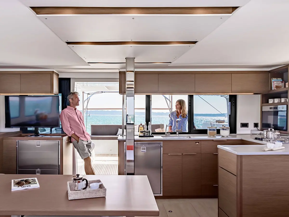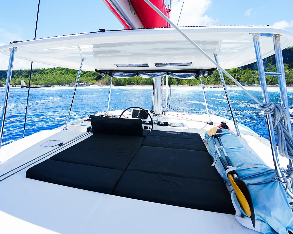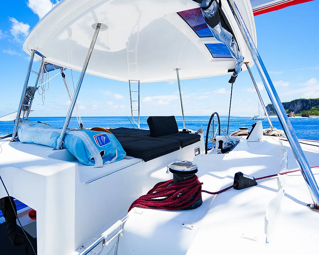 Barbecue grill in cockpit, Bimini, Cockpit cushions, Generator, Outboard engine, Refrigerator, Solar Panels, Water maker