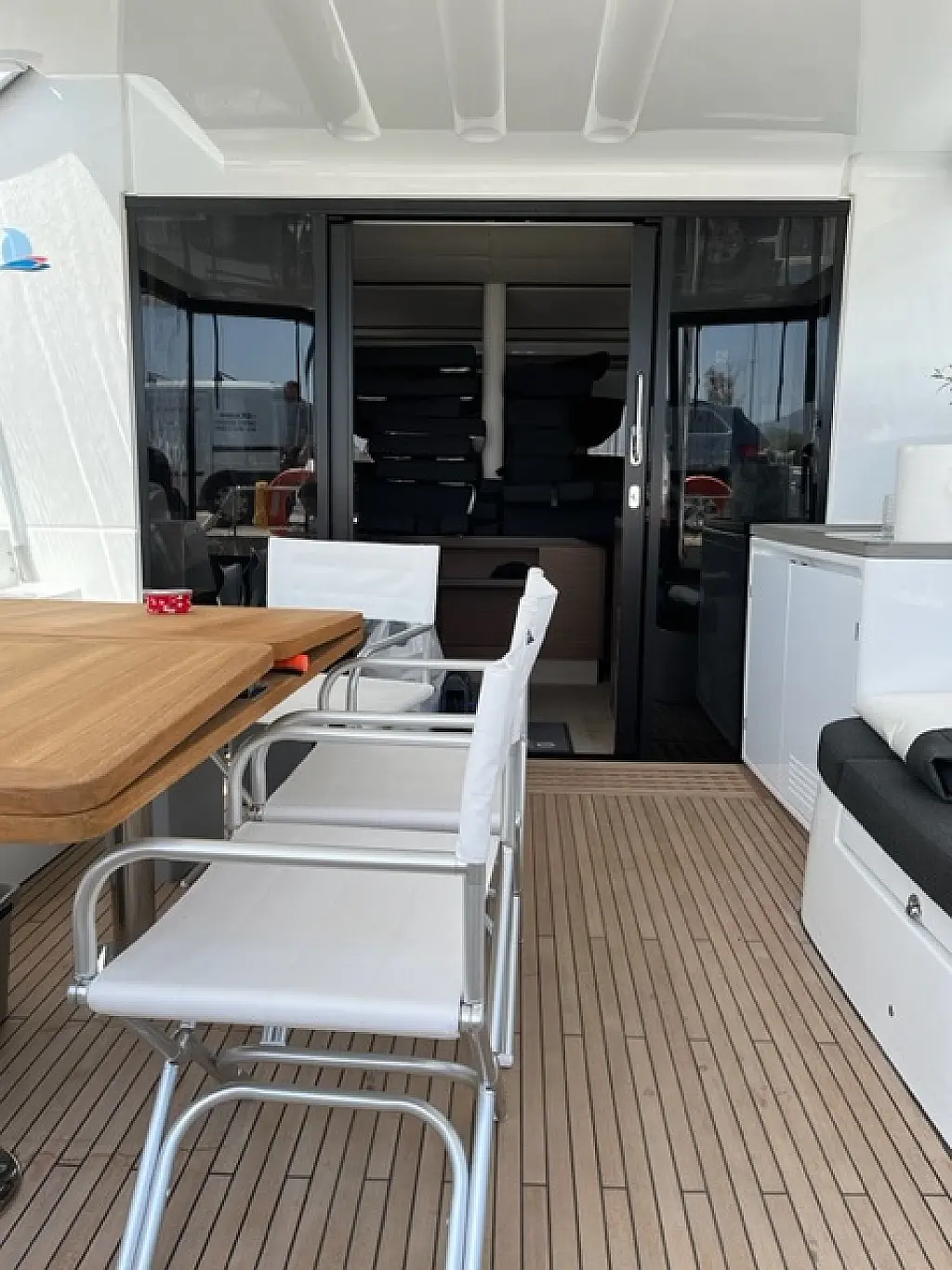 Sprayhood, Ice maker, Air condition, Dinghy, Wi-Fi & Internet, Hydraulic gangway, Electric toilet, Water maker, Refrigerator, Generator, Inverter, Electric winches, Outboard engine, Solar Panels