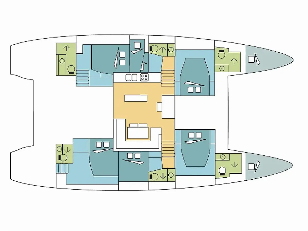 6 (5 Double Cabins, 1 Twin Cabins for the guests) + separate cabins for the crew