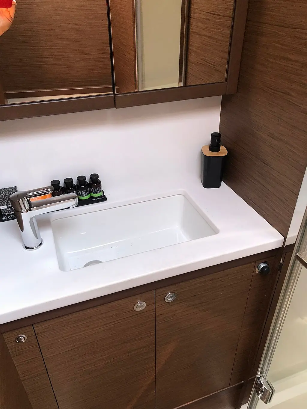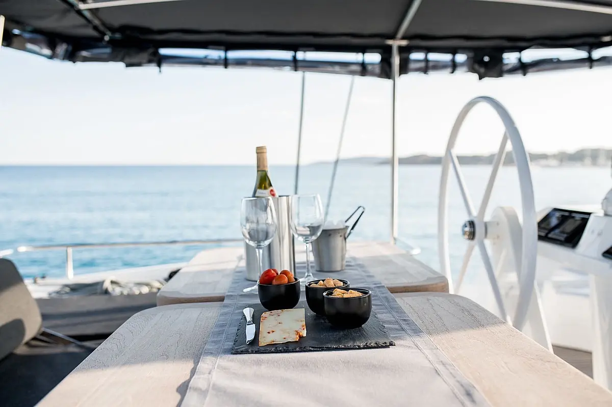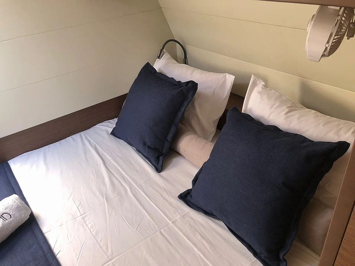 Teak Cockpit, Air condition, Electric toilet, Coffee maker, Generator, Hydraulic gangway, Outboard engine, Water maker