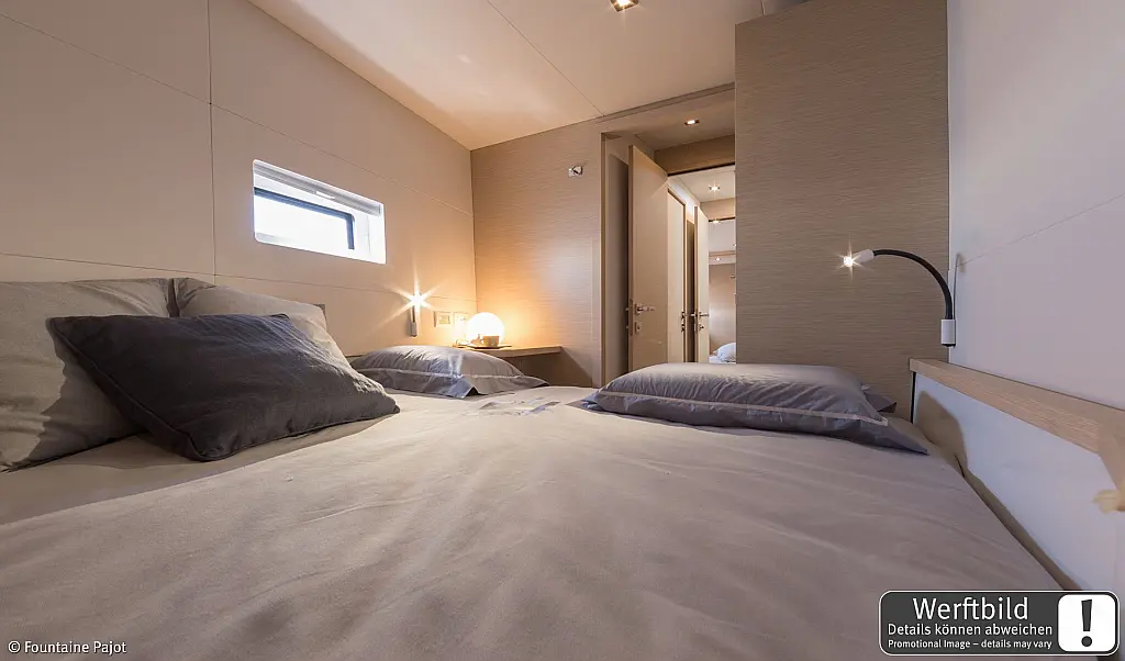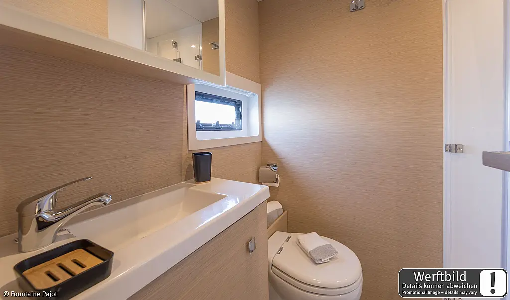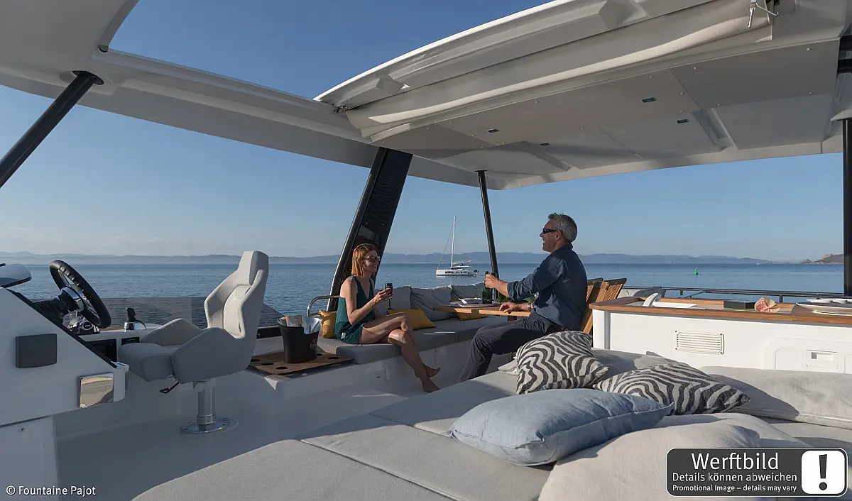 Refrigerator, Wi-Fi & Internet, Air condition, Water maker, Electric toilet, Bimini, Dinghy, Holding tank, Sprayhood, Cockpit cushions, Generator, Solar Panels, Teak Cockpit