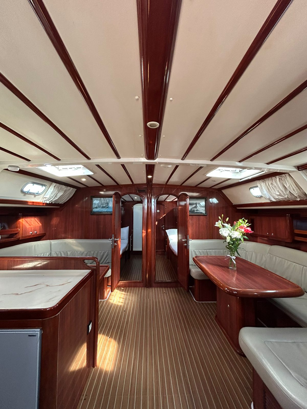 Air condition, Solar Panels, Dinghy, Cockpit speakers, Heating, Bimini, Teak deck, Refrigerator, Sprayhood